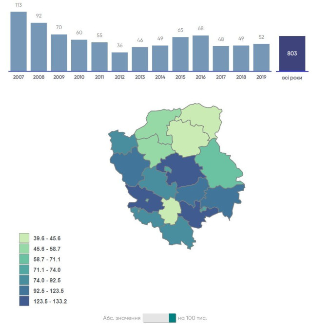 За статистикою, найбільше загиблих водіїв було у 2008 році – це 63 людини. Відтоді їх кількість з роками почала зменшуватись. Найменше водіїв загинуло у 2012 році – 25 людей. А у 2019 році кількість загиблих – 30 осіб.