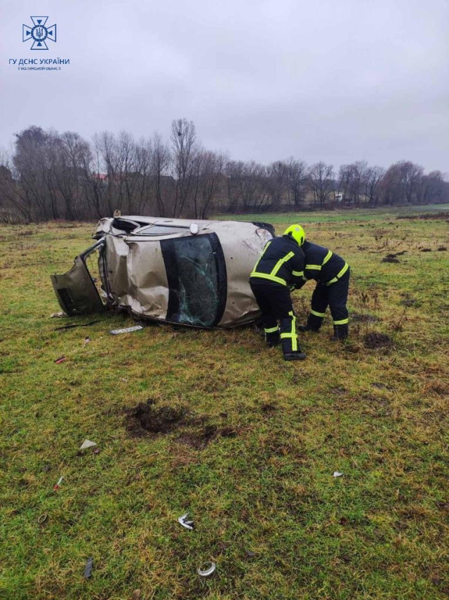 Прибувши на місце події, відділення аварійно-рятувальної частини м. Луцька встановили, що внаслідок погодних умов через слизьке покриття водій не впорався з керуванням та злетів з дороги.