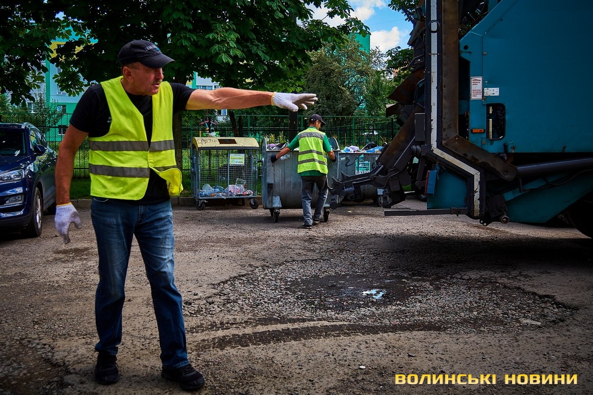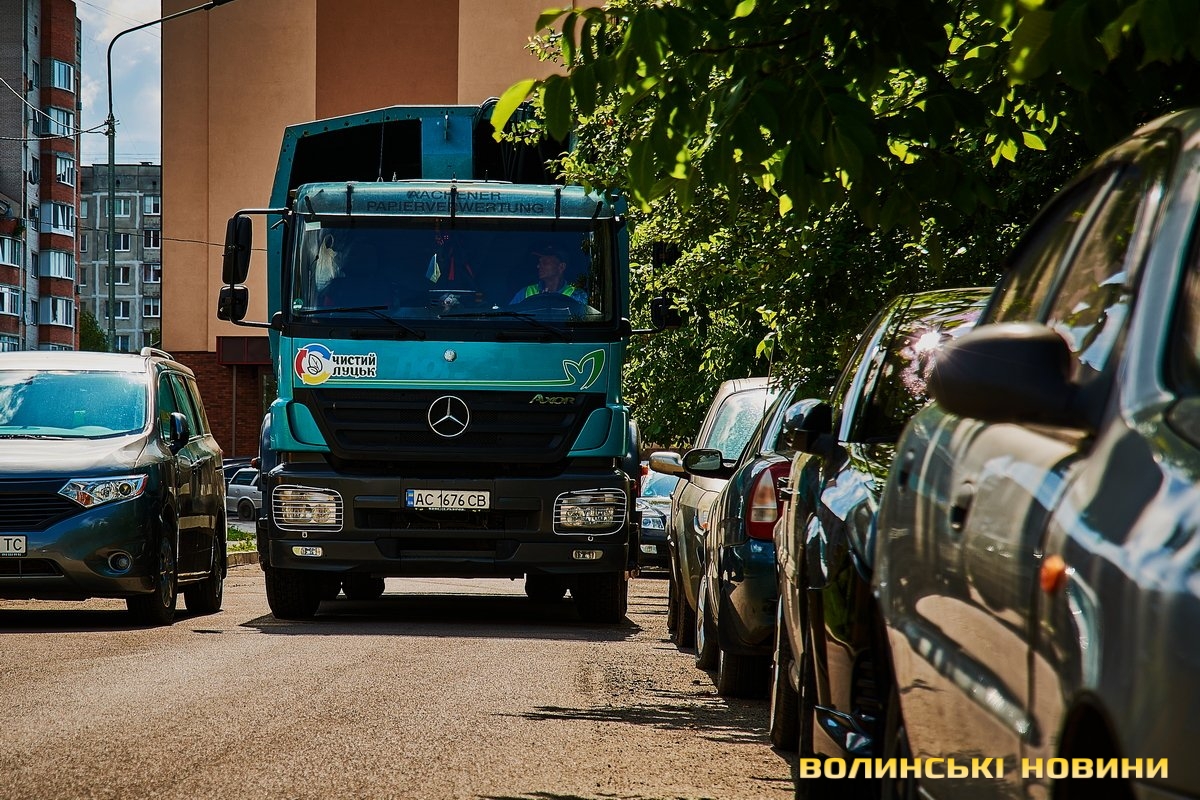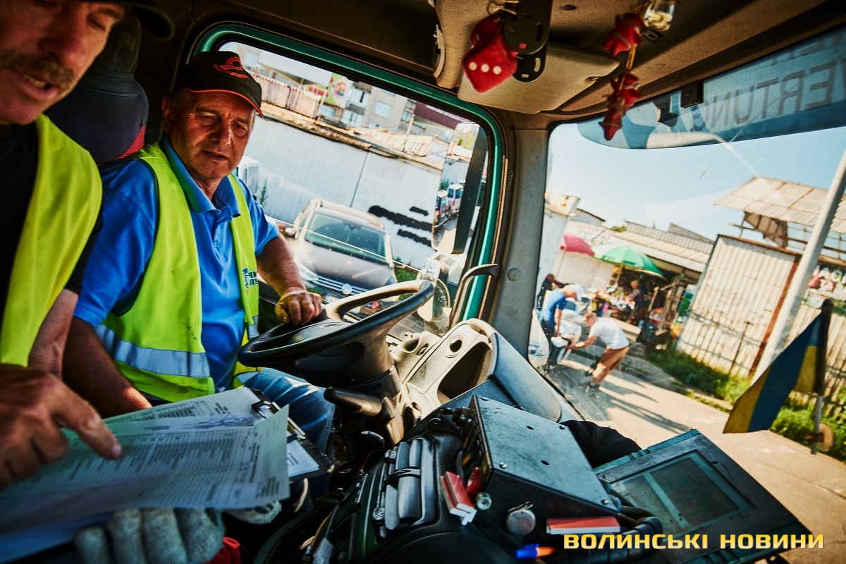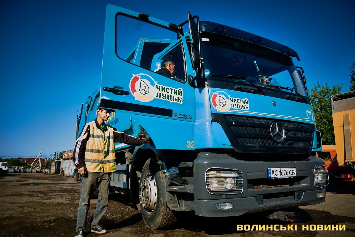 «Ну що, пані кореспондентко, ризикнете до нас у кабіну?» – сміються.Чом би й ні? Звісно, ризикну. У кабіні, окрім водія, зазвичай їдуть двоє вантажників. В око одразу впадають чистота, милі дрібнички на панелі. Лунає бадьора музика – «щоб сміттячко веселіше з контейнерів вистрибувало», жартують комунальники.Анатолій Соколов у «Луцькспецкомунтрансі» працює вже п’ять років. За будь-якої погоди – чи то в спеку, чи в мороз, незважаючи на дощ чи заметіль. Зізнається: звісно, то не робота мрії, та відразу додає: але ж і таке комусь треба робити. До того ж, приємно, коли лучани дякують за чистоту.Його колега Костянтин Сильчук додає: «Хтось хліб пече, хтось будинки будує, а комусь і сміття вивозити треба. Я вже п’ятий рік тут працюю».«Сьогодні, наприклад, у нас за планом – 200 контейнерів. То буде дві отакі машини сміття, – розповідає Анатолій Соколов. – Спершу його збираємо, як кажуть, «під зав’язку», тоді вже веземо на полігон у Брище».Чоловік каже, що найбільше під час роботи дошкуляє аж ніяк не неприємний запах. Проблема – у доїзді до контейнерів.«Автомобілів у місті, самі знаєте, багато. І воно, з одного боку, добре, бо значить, що люди добре заробляють. Але ми просимо: не паркуйте машини близько до контейнерів, бо ж тоді ми не можемо безперешкодно доїхати, щоб забрати сміття, – наголошує комунальник. – Наші автомобілі габаритні, і водії щоразу потерпають, щоб, бува, не зачепити яку машину».Люди, додає пан Анатолій, різні: дехто перепрошує і відганяє транспорт, а дехто відверто хамить і заявляє, що в своєму дворі паркуватиметься, де схоче.«Воно то так. Але що ж буде, коли ми раз, другий, третій до того смітника не доїдемо? Той самий паркохам на нас скаржитиметься, що не виконуємо своїх обов’язків, – знизує плечима чоловік. – Тому просимо: будьмо взаємоввічливими. У світі й без того повно негативу».Тим часом водій Микола Панасюк віртуозно маневрує величезним автомобілем дворами поміж автівками. Атож, щоб кермувати таким транспортом, потрібен чималий досвід. А його в пана Миколи не бракує: працював і водієм вантажівок, і на маршрутках. На «Луцькспецкомунтрансі» – вже понад 17 років. Тож усі міські маршрути та їхні зиґзаґи й віражі добре знає.«Найважче заїжджати в невеликі двори, де повно автомобілів. Іноді реально не знаєш, як його заїхати, щоб ніяку автівку не зачепити, – зітхає. – Але що ж – маневруємо».«Напевно, найбільше роботи у вас після свят?» – цікавлюся.