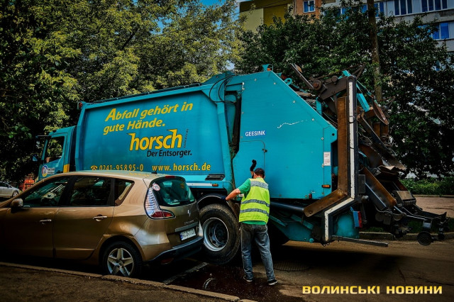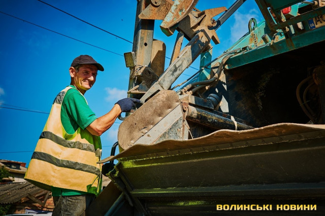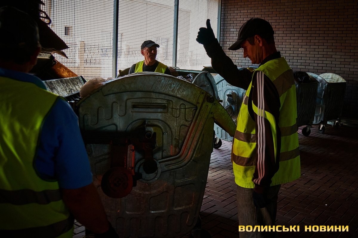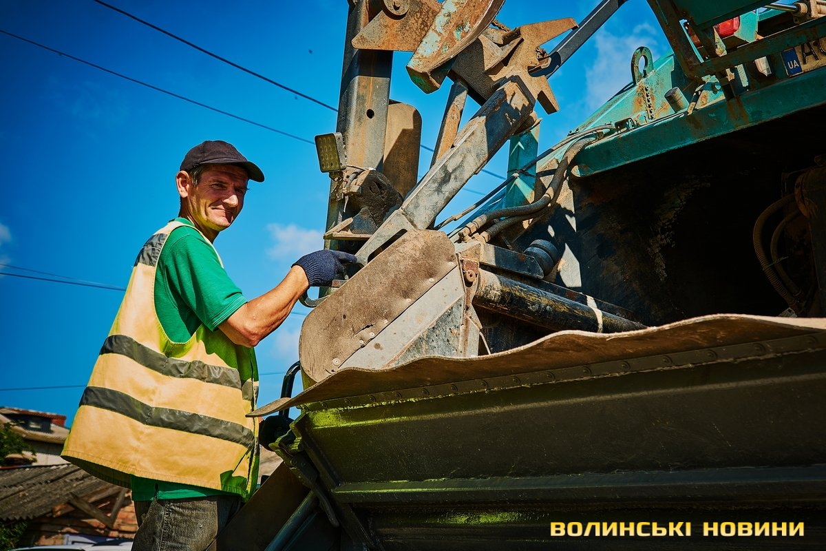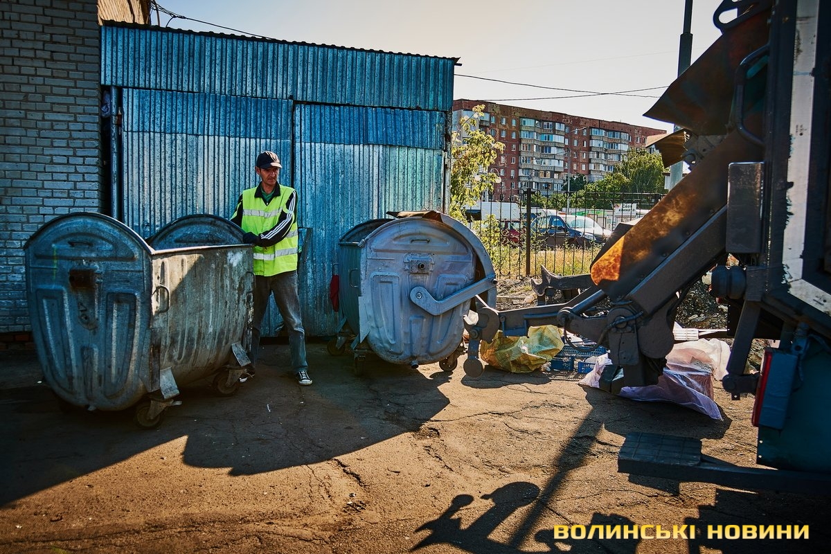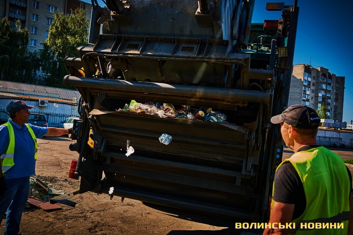 «Ну що, пані кореспондентко, ризикнете до нас у кабіну?» – сміються.Чом би й ні? Звісно, ризикну. У кабіні, окрім водія, зазвичай їдуть двоє вантажників. В око одразу впадають чистота, милі дрібнички на панелі. Лунає бадьора музика – «щоб сміттячко веселіше з контейнерів вистрибувало», жартують комунальники.Анатолій Соколов у «Луцькспецкомунтрансі» працює вже п’ять років. За будь-якої погоди – чи то в спеку, чи в мороз, незважаючи на дощ чи заметіль. Зізнається: звісно, то не робота мрії, та відразу додає: але ж і таке комусь треба робити. До того ж, приємно, коли лучани дякують за чистоту.Його колега Костянтин Сильчук додає: «Хтось хліб пече, хтось будинки будує, а комусь і сміття вивозити треба. Я вже п’ятий рік тут працюю».«Сьогодні, наприклад, у нас за планом – 200 контейнерів. То буде дві отакі машини сміття, – розповідає Анатолій Соколов. – Спершу його збираємо, як кажуть, «під зав’язку», тоді вже веземо на полігон у Брище».Чоловік каже, що найбільше під час роботи дошкуляє аж ніяк не неприємний запах. Проблема – у доїзді до контейнерів.«Автомобілів у місті, самі знаєте, багато. І воно, з одного боку, добре, бо значить, що люди добре заробляють. Але ми просимо: не паркуйте машини близько до контейнерів, бо ж тоді ми не можемо безперешкодно доїхати, щоб забрати сміття, – наголошує комунальник. – Наші автомобілі габаритні, і водії щоразу потерпають, щоб, бува, не зачепити яку машину».Люди, додає пан Анатолій, різні: дехто перепрошує і відганяє транспорт, а дехто відверто хамить і заявляє, що в своєму дворі паркуватиметься, де схоче.«Воно то так. Але що ж буде, коли ми раз, другий, третій до того смітника не доїдемо? Той самий паркохам на нас скаржитиметься, що не виконуємо своїх обов’язків, – знизує плечима чоловік. – Тому просимо: будьмо взаємоввічливими. У світі й без того повно негативу».Тим часом водій Микола Панасюк віртуозно маневрує величезним автомобілем дворами поміж автівками. Атож, щоб кермувати таким транспортом, потрібен чималий досвід. А його в пана Миколи не бракує: працював і водієм вантажівок, і на маршрутках. На «Луцькспецкомунтрансі» – вже понад 17 років. Тож усі міські маршрути та їхні зиґзаґи й віражі добре знає.«Найважче заїжджати в невеликі двори, де повно автомобілів. Іноді реально не знаєш, як його заїхати, щоб ніяку автівку не зачепити, – зітхає. – Але що ж – маневруємо».«Напевно, найбільше роботи у вас після свят?» – цікавлюся.