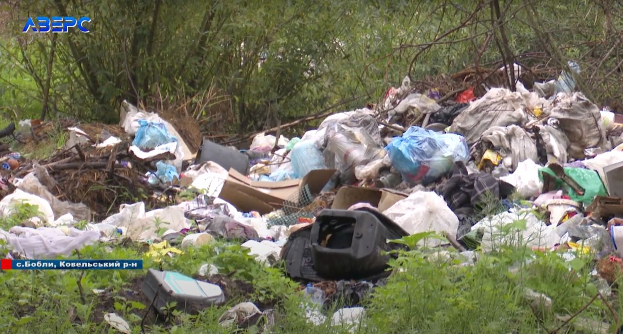 Порожні консервні банки, упаковки з-під соку, лахміття та інше сміття розкидано поблизу лісової дороги, що неподалік села Бобли Ковельського району. Вітром ці побутові відходи зі стихійного сміттєзвалища заносить і на дерева, і на поля.