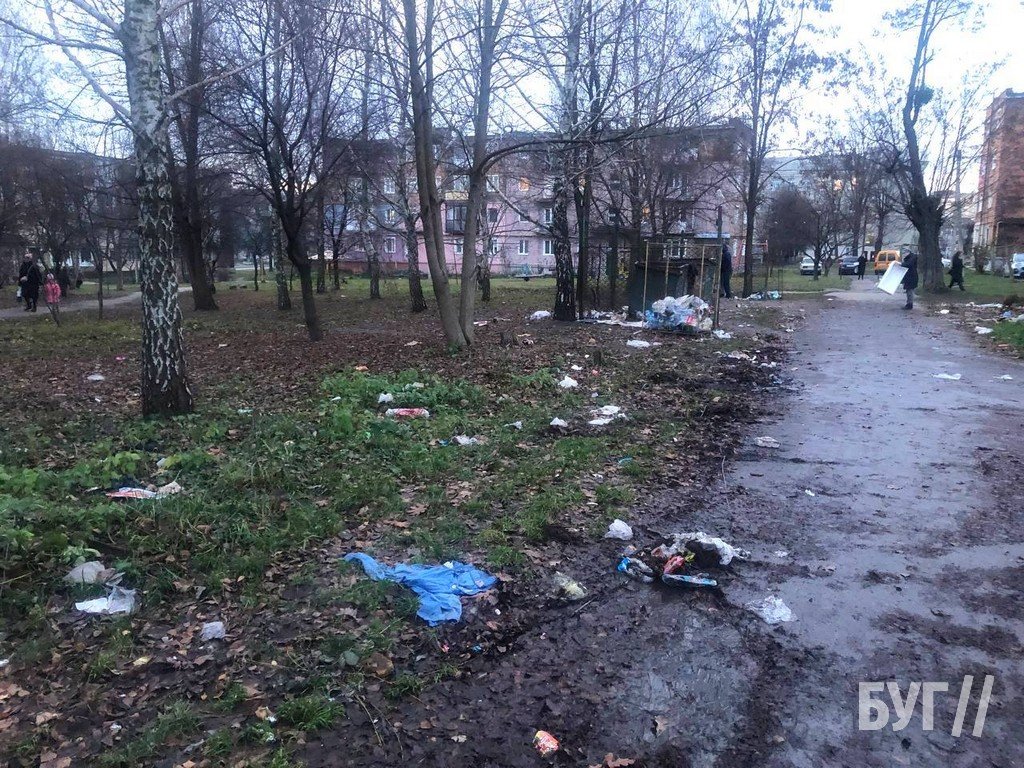 Пакети та папір зі сміттєвого майданчика, що у Нововолинську за універмагом «Чайка», розлітаються по дворах, газонах та чіпляються за дерева.