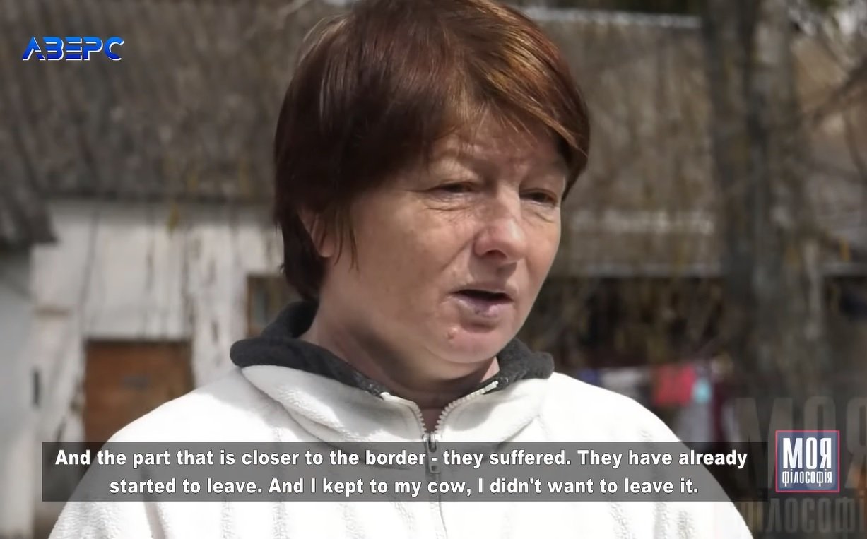 «Ми іноді говоримо: «Ой, та я бідна, та в мене нічого немає». А Господь потім показує, як це по-справжньому, коли нема нічого. Не можна так говорити. Треба казати, що все добре, і Господь покаже, як все добре. Ми дурні були, казали, що чогось там не вистачає, а тепер я згадую і бачу, що в мене було все, а тепер немає. Зараз тільки молю Бога, щоб приїхати додому. Знайомі дзвонять і кажуть, що навіть корівка моя жива, хтось прив’язав її, ходять до мене, беруть корм. Я хочу, щоб ніколи не було війни ні в кого, щоб всі жили в мирі. Щоб всі розуміли, що якісь амбіції – це дрібниця, що людське життя – це дорого, щоб люди це цінували», – резюмує жінка.