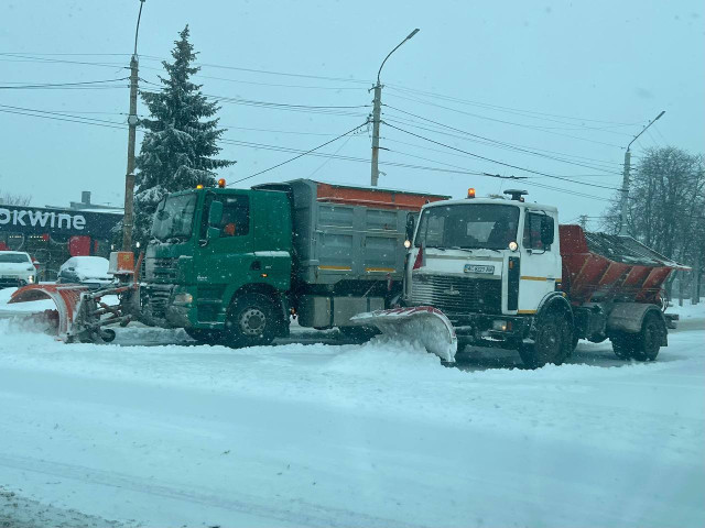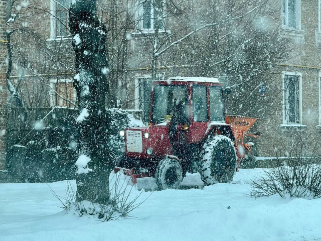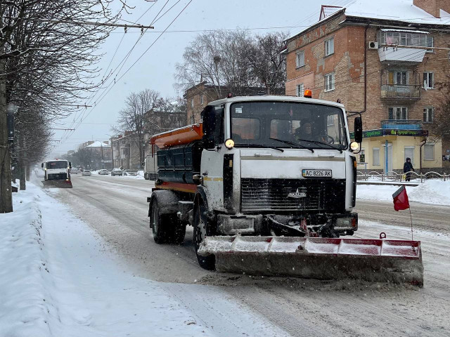 У Луцьк та селах громади триває інтенсивний снігопад. Працівники «Чистого Луцька» завчасно провели контрольне посипання доріг, а зараз на маршрутах безперервно працюють 12 спецмашин і 6 тракторів.