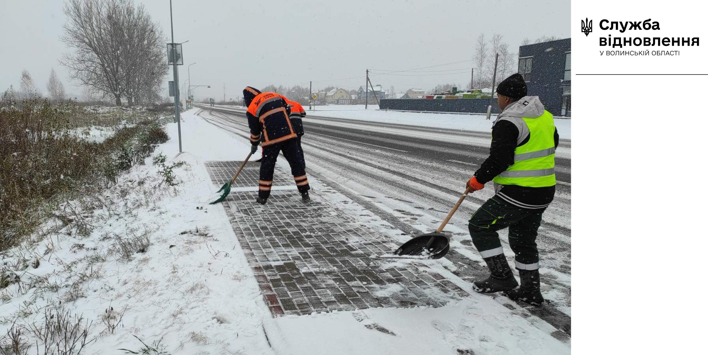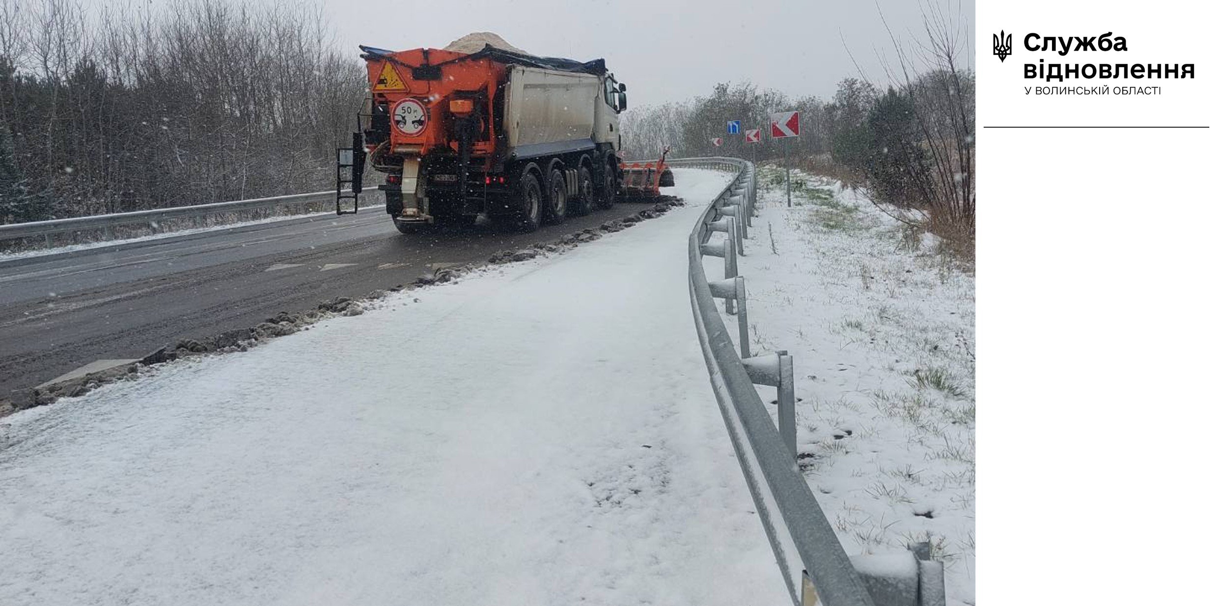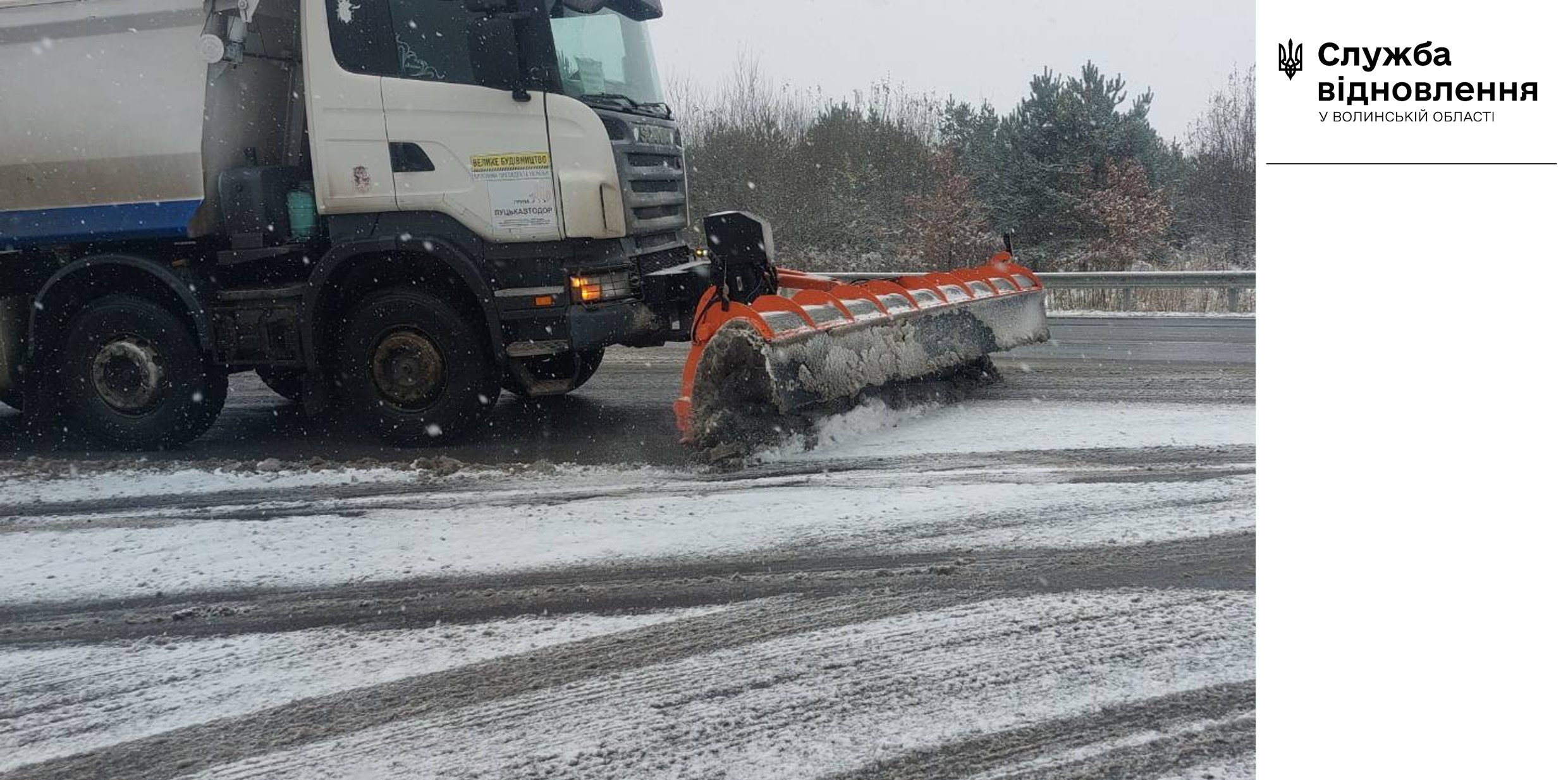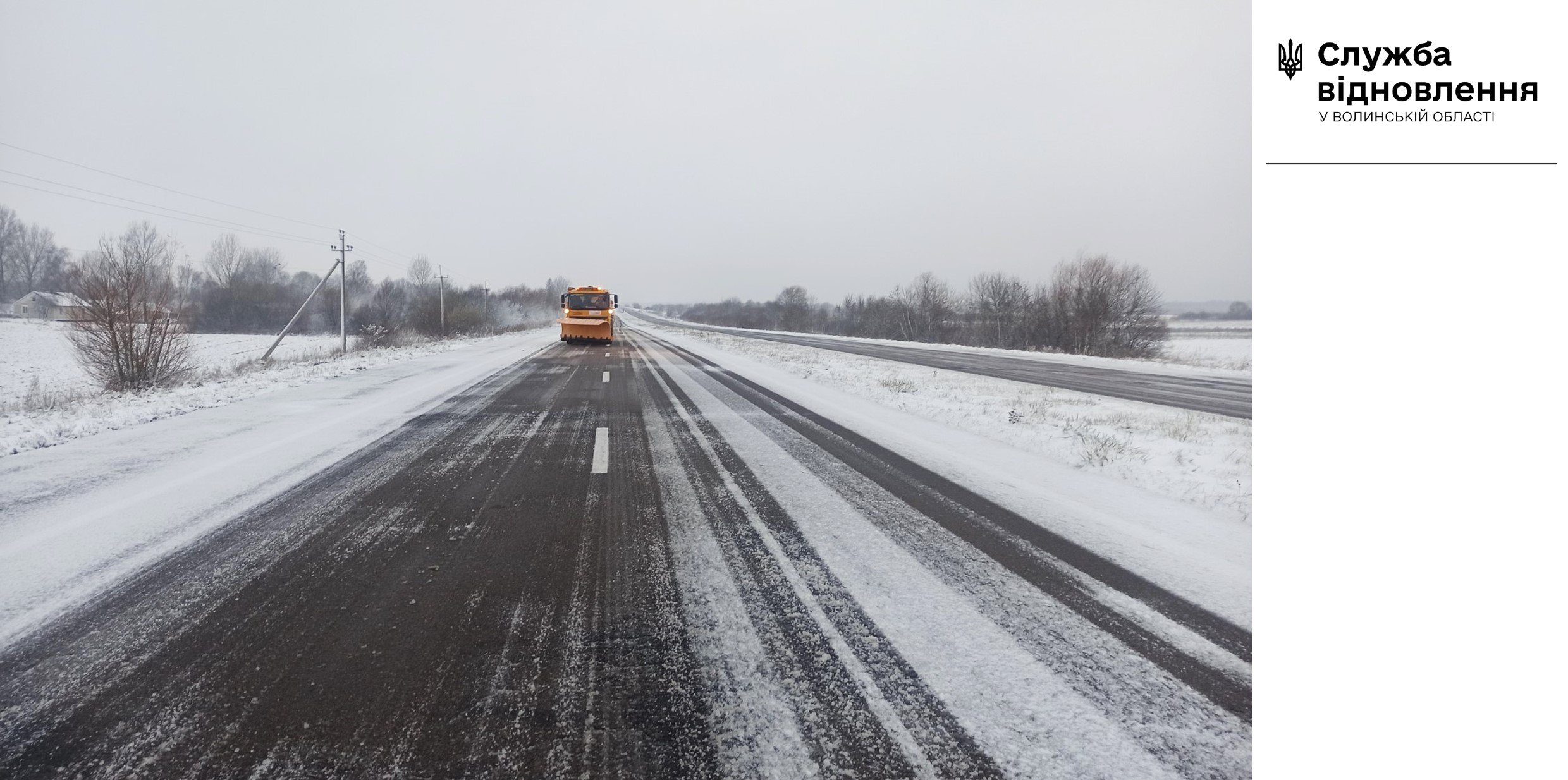 На території Волинської області рясно сніжить. Аби не допустити ожеледиці на дорогах, проводяться роботи з розчищення проїзної частини від снігу та її оброблення піщано-соляною сумішшю або технічною сіллю.