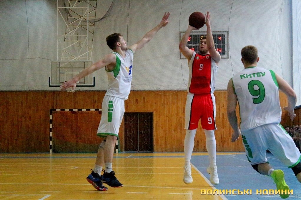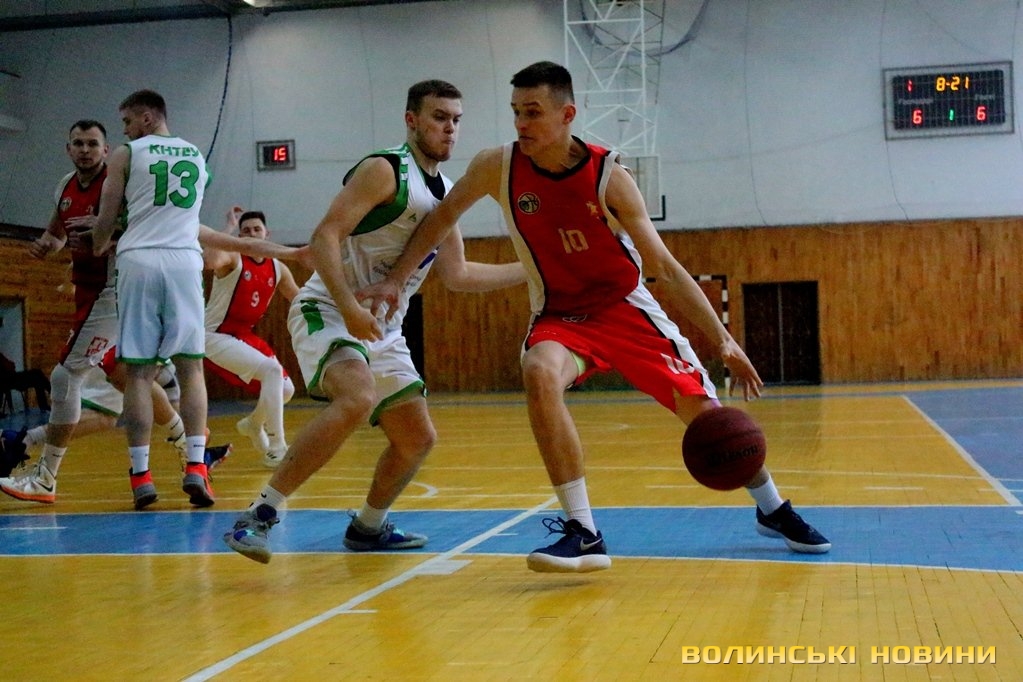 Перші очки у матчі забили гості, однак хлопці з СНУ почали стріляти «трьохами», зокрема два дальніх закинув Глушко, також з-за дуги влучив Прозапас. Хоча варто зазначити, що гра була рівною, адже кияни відповідали на результативні дії лучан. Вже згодом завдяки ендвану Глушка лучани відірвалися на шість очок, в наступній атаці вдалі дії Глушка повторив Шевчук, ще збільшивши перевагу своєї команди, також «трьоху» закинув Дейна. Втім, за дві хвилини до кінця гості скоротили відставання на одне двохочкове попадання. Щоправда, Шевчук закинув ендван з сиреною, встановивши фінальний рахунок чверті 28:23.На початку другої десятихвилинки гості скоротили відставання до одного балу, проте завдяки «трьосі» Шевчука СНУ знову відірвався. Цікаво, що кияни то наздоганяли, то відпускали лучан у рахунку. За чотири хвилини до великої перерви рахунок вже був рівний, а далі відбулася справжня перестрілка. Дейна дальнім вивів свою команду вперед, однак гості відповіли тим же. Потому гості завдяки «трьосі» вийшли вперед, Серьогін відповів ти же, але гості знову закинули дальній. Лише завдяки дальньому влучанню того ж Серьогіна СНУ пішов на велику переву з п’ятиочковою перевагою – 57:52.Після перерви у кошик гостей залетіло дві «трьохи» від Дейни та Прозапаса. Вже згодом лучани наростили свою первагу до дев’яти очок, однак вдалі дії киян наприкінці чверті дозволили їм знову скоротити відставання до п’яти очок – 79:74.Хлопці з КНТЕУ не були згодні з поразкою і за першу половину фінальної десятихвилинки скоротили відставання та навіть зуміли вийти вперед. А далі на майданчику відбулася ще одна перестрілка: Прозапас дальнім вивів в лучан вперед, в наступній атаці гості також забили три, але Дейна в наступній атаці знову відновив перевагу своєї команди. Останні хвилини більш вдало провели лучани та завдяки двом реалізованим штрафним Дейни та дальньому від Серьогіна зуміли вибороти перемогу – 96:86.Найрезультативнішим у лучан став Володимир Шевчук, який оформив дабл-дабл – 33 очки та 11 підбирань, також дабл-дабл оформив Максим Дейна – 19 очок та 15 підбирань.