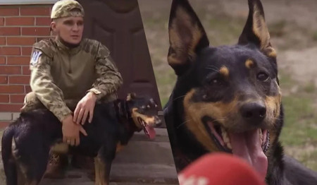 Відома собака Жужа возз'єдналася з волинським військовим, якого врятувала під Бахмутом