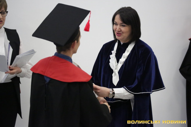 «Я бажаю, щоб ви були успішними, бажаю вам легкого шляху. Ми вас безмежно любимо – це ми показуємо динамічним розвитком університету. Я сподіваюся, ви будете горді тим, що є випускниками Луцького національного технічного університету. Це підсумок того, над чим ви працювали. Сьогодні – день старту», – акцентувала Ірина Вахович.Не залишилися випускники і без порад та мотивації від відомих волинян: будівельника Ігоря Чорнухи, айтішника Віктора Левандовського, генерального директора SKF Богдана Волчка та нардепа Вячеслава Рубльова.Після вітальних слів ексстуденти, а нині вже магістри, отримали дипломи. Втім Ірина Вахович відзначила, що це не остання зустріч з випускниками, запросивши їх на навчання в аспірантуру.