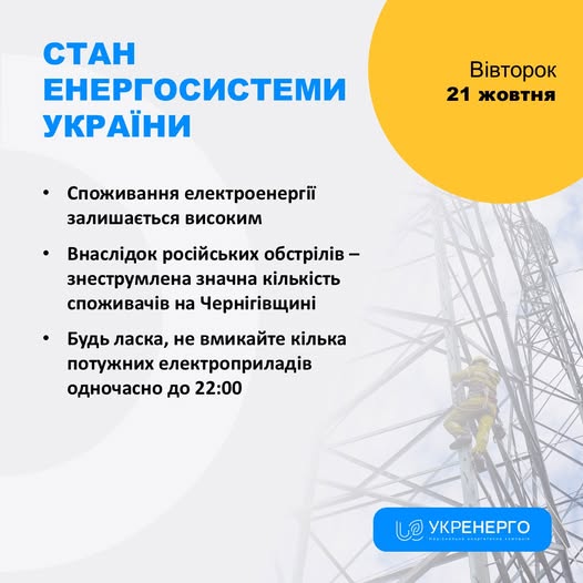 У зв’язку зі складною ситуацією в енергосистемі – сьогодні, 21 жовтня, на території Волинської області обмежать потужності для промисловості та бізнесу.
