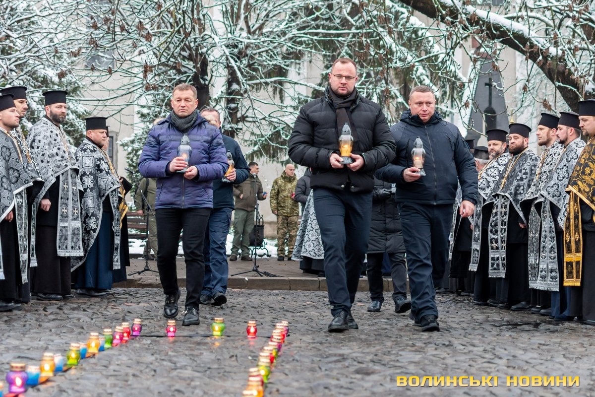 У четверту суботу листопада вшановують пам'ять загиблих під час голодів 1921-1923, 1932-1933, 1946-1947 років. Цьогоріч пам'ять про Голодомор 1932-1933 років, який було визнано геноцидом українського народу, важлива не лише як спогад про страшну сторінку нашого минулого. Росія своїми діями вкотре нагадує, що голод для неї – зброя. І 90 років тому, і нині. Агресор просто продовжує дії більшовиків. Тож недарма закликом до усіх українців нині є такі слова: «Пам’ятаємо. Єднаємося. Переможемо».Жалобна служба, яку відправив митрополит Луцький і Волинський Михаїл, розпочалася біля пам’ятника Християнському милосердю волинян. Тут – на території Хресто-Воздвиженської церкви – зібралися представники обласної та міської влади, депутати, військові, небайдужі лучани.Затим процесія перейшла на Замкову площу. Тут квіти та свічки піднесли до пам'ятника жертвам політичних репресій.Після панахиди владика Михаїл звернувся до присутніх: