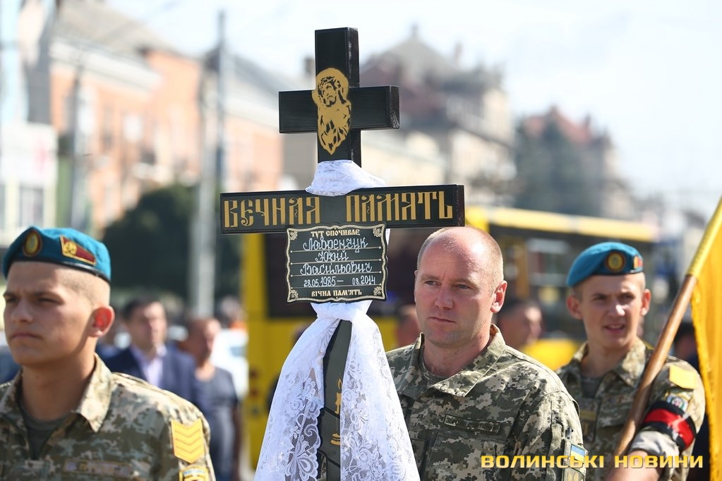Сотні лучан прийшли, аби провести в останню путь загиблого чотири роки тому в Іловайському котлі волинянина Юрія Лавренчука, який брав участь в антитерористичній операції у складі 51 окремої механізованої бригади.