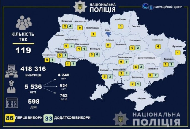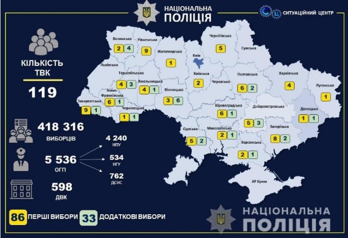 Також сьгодні додаткові вибори депутатів сільських, селищних рад від територіальних громад, що приєдналися до відповідних ОТГ.