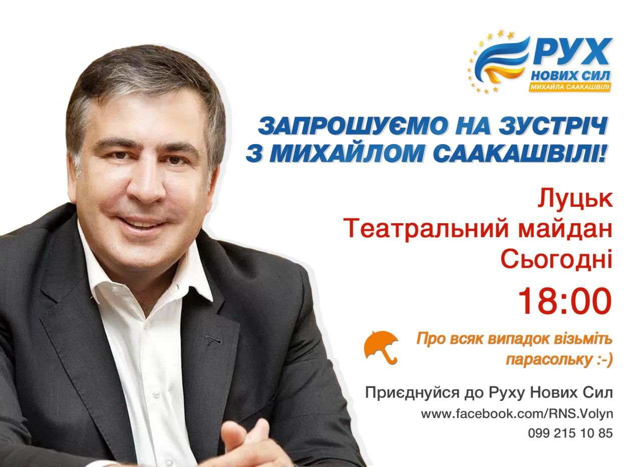 Сьогодні, 5 жовтня, один з лідерів опозиції в Україні Міхеїл Саакашвілі приїде до Луцька, де виступить на Театральному майдані.