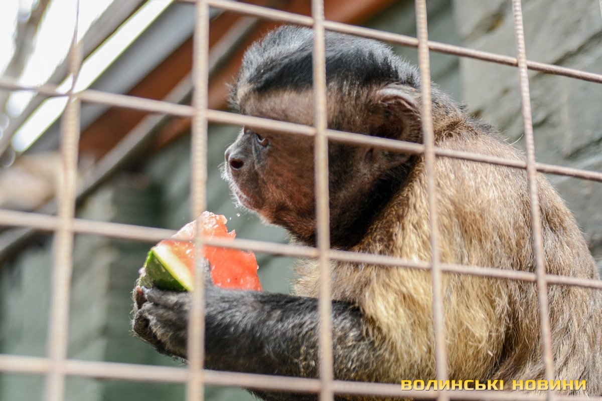 «Насправді така спекотна погода для нас – це дуже добре, бо для наших підопічних найгіршими є холод і зими, – розповідає директорка Луцького зоопарку Людмила Денисенко. – Взимку треба підтримувати температуру, розчищати вольєри від снігу. А ось у спеку всім комфортно. Адже у нас багато екзотичних тварин і для них це – природній температурний режим».Так, лемури і сурикати навіть не збираються ховатися в свої будиночки. Постійно на вулиці й мавпи.«Усі примати: капуцини, чорночубі мангобеї, червоні мавпи-гусари перебралися на вулицю. Якщо раніше ми на ніч заганяли їх у приміщення, то тепер вони мають можливість цілодобово перебувати на свіжому повітрі, приймати сонячні ванни», – каже очільниця звіринця.