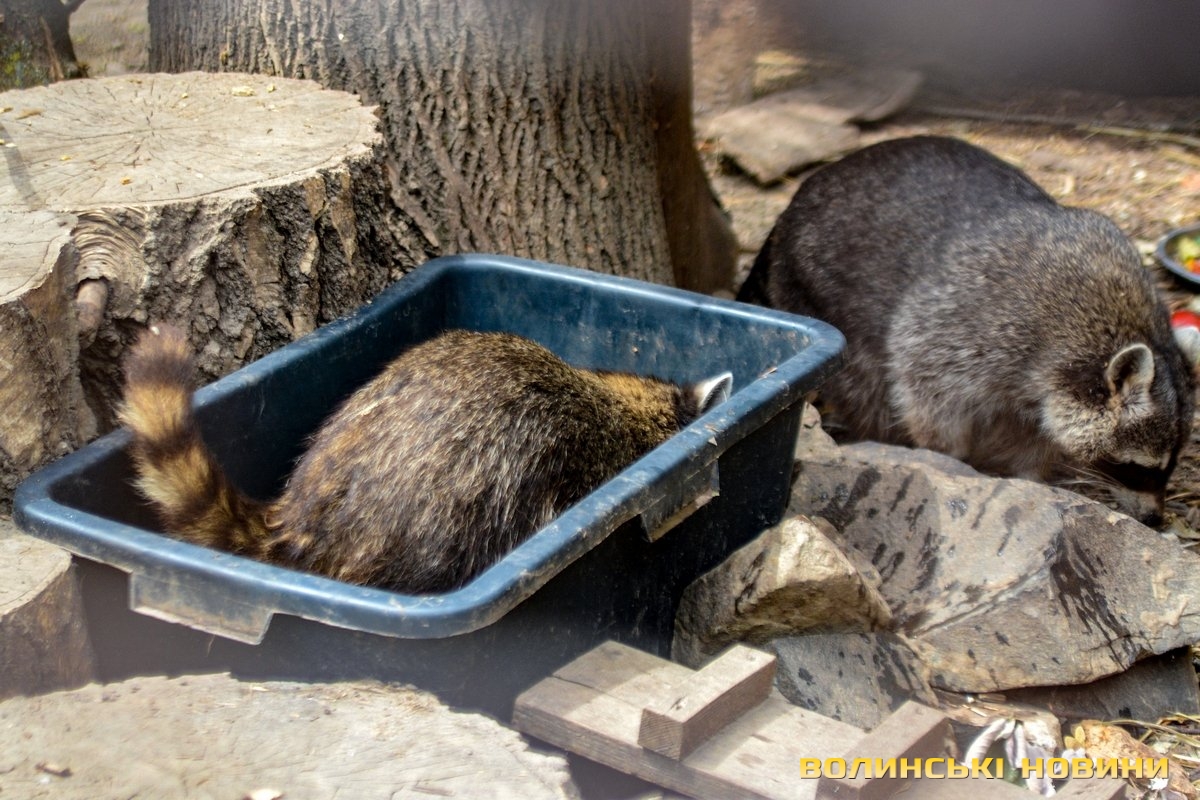 Звичайно, у зв’язку зі зміною температурного режиму, тваринам відкоригували раціон. Тепер у них менше каш, натомість додалося більше соковитих овочів і фруктів.Ні в кого, кажуть працівники зоопарку, від спеки не погіршився апетит, хіба хижаки стали трохи менше споживати м’яса – тож у них поки розвантажувальні дні. І, звичайно, в постійному вільному доступі має бути питна вода. У вольєрах вода замінюється двічі-тричі на день, головне, щоб у тварин був завжди вільний доступ до неї.Цим цілковито користуються єноти, які по черзі залазять у імпровізований басейн. Також встановили ємність з водою для норки, де вона може навіть ловити рибу. Щовечора купаються тигри, а ось леви – навпаки: ванн вони не приймають.«У кожному вольєрі є сховки або будиночки, де є тінь і тварина може завжди заховатися від палючого сонця, коли їй набридне приймати сонячні ванни. У нашому випадку спека йде тваринам якраз на користь», – додає Людмила Денисенко.Читати ще: Місце зустрічі – зоопарк. «Знáйди» луцького звіринця
