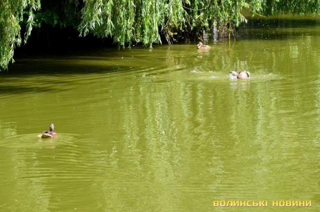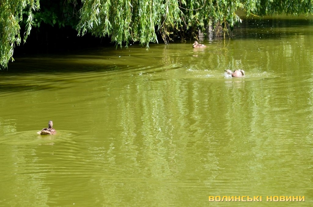 Що ж, здається, тварини розділилися за інтересами. Любителі жагучого сонця приймають повітряні ванни, а прохолоди – сховалися у затінку. Усе правильно. А де охочі покупатися? У таку спеку це справжній порятунок, адже на сонці +32º С.