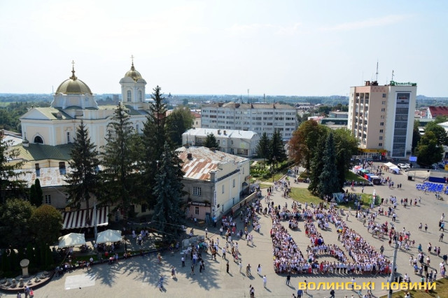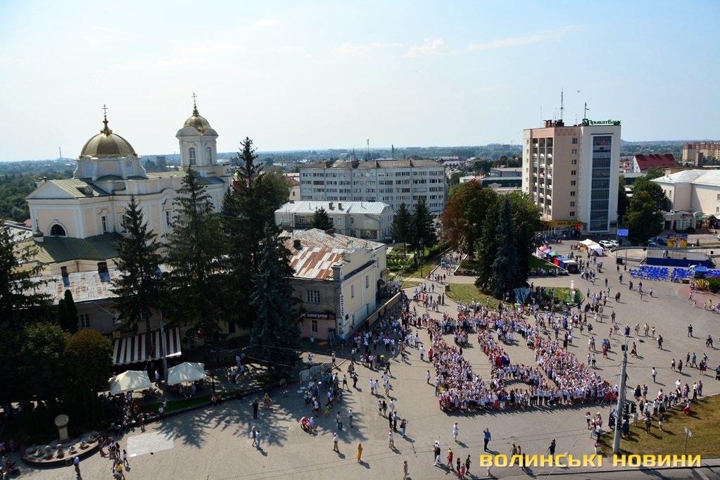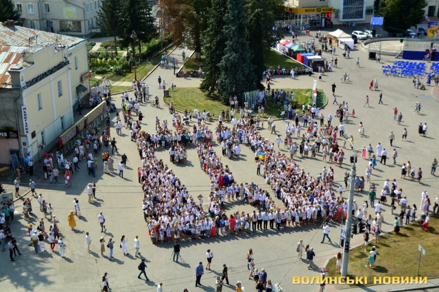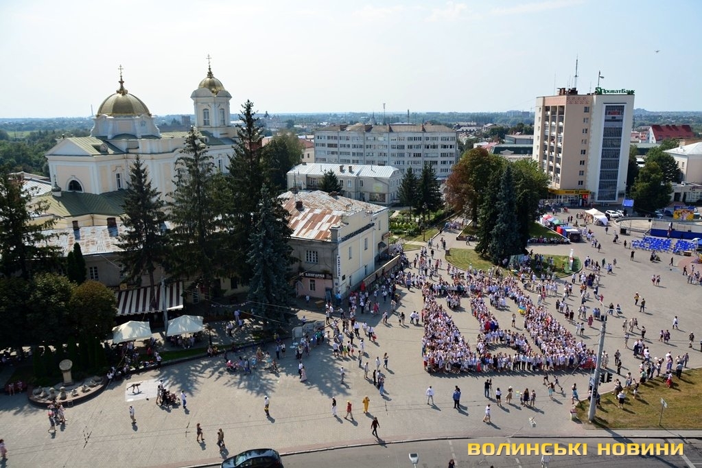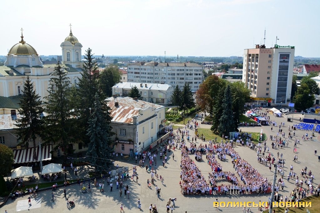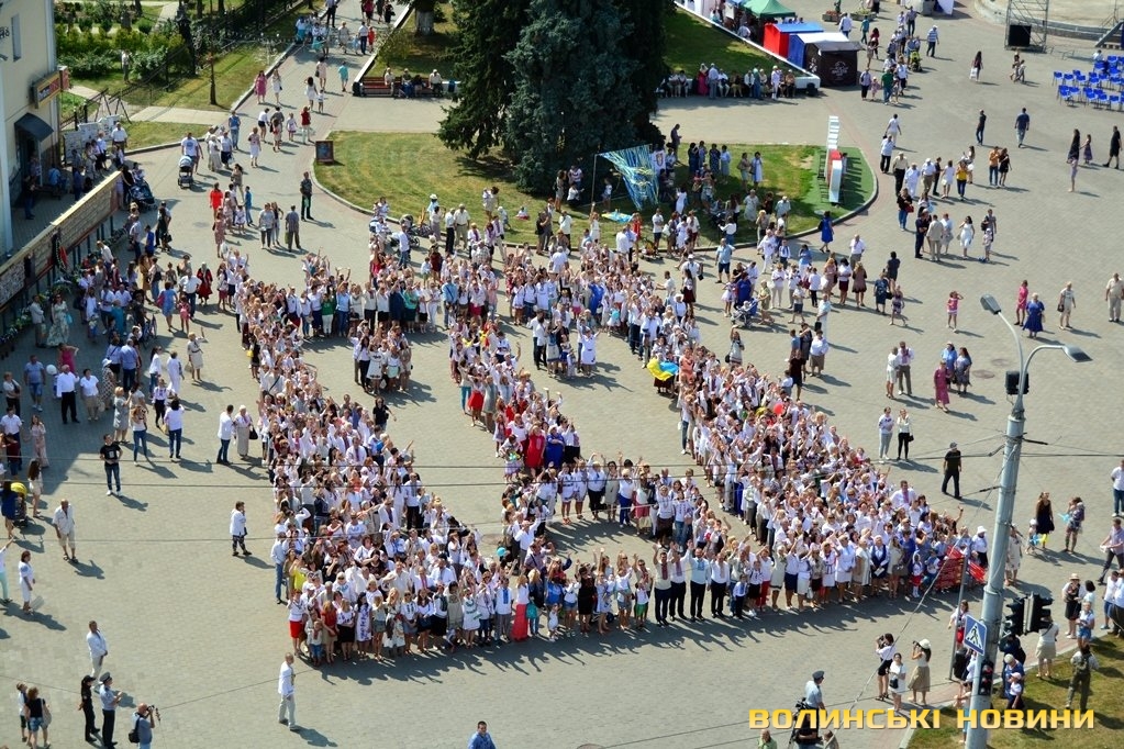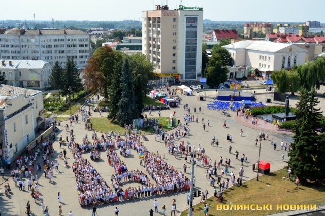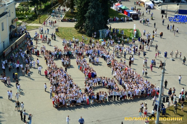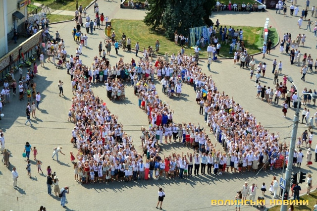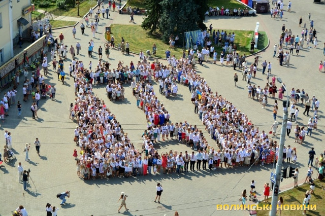 Вбравшись у вишиванки, сотні лучан утворили велетенське зображення В’їзної вежі Луцького замку.