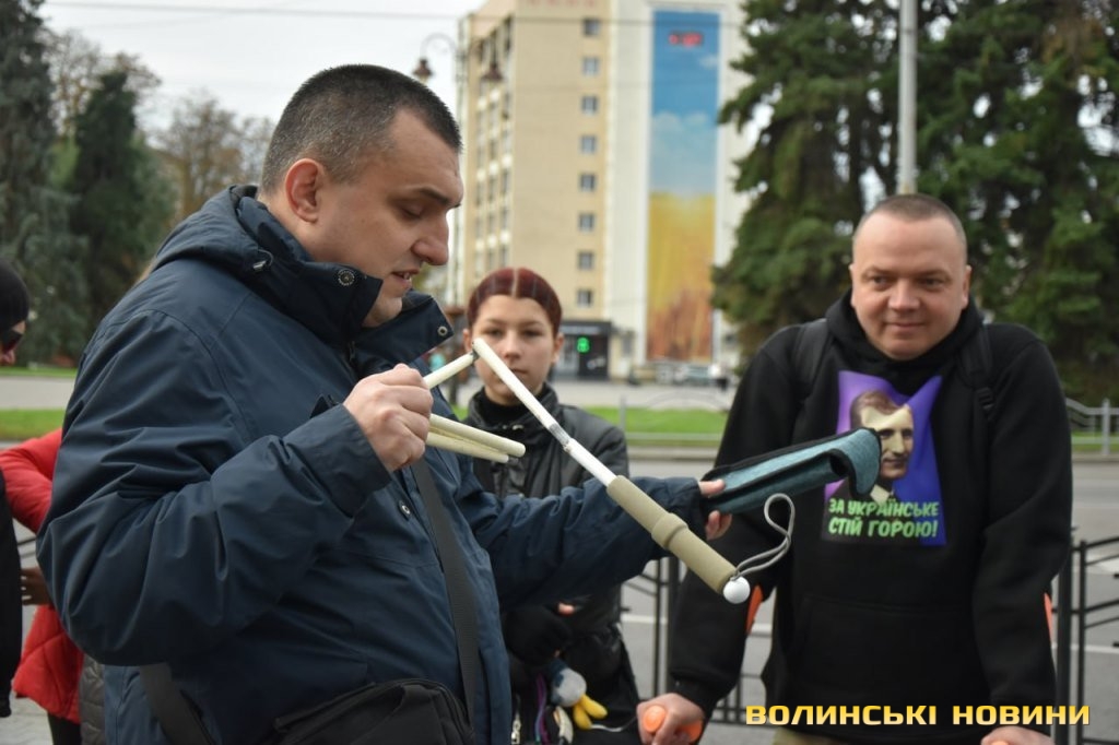 У центрі Луцька провели соціальний флешмоб до Дня білої тростини, який щорічно відзначають 15 жовтня. Цей день присвячений людям із порушеннями зору. Захід має на меті привернути увагу влади та громадськості до проблем, з якими стикаються незрячі та з частковою втратою зору лучани у повсякденному житті: користування громадським транспортом, покупки в магазині, долання пішохідного переходу тощо.