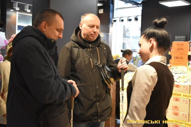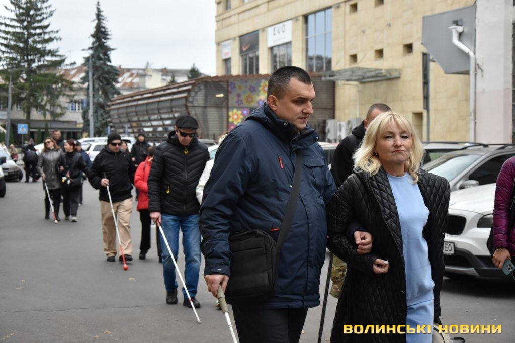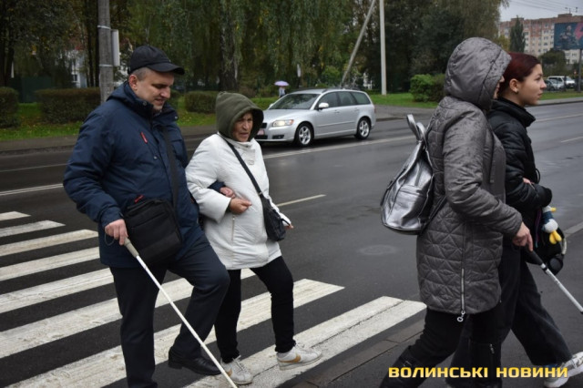 Про малодоступність міста для осіб з інвалідністю зазначив керівник ГО «Зруш скелю» Євген Сивопляс. Зараз організація тестує місцеву інфраструктуру і, як зазначає чоловік, пристосованості для незрячих дуже мало.«Щодо пристосованості багато закладів зараз можуть отримати найвищу оцінку п'ять, але якщо ми візьмемо з собою незрячу людину, то може бути просто нуль, і тоді середня оцінка виходить 2,5. Справді дуже мала адаптованість, навіть у важливих структурах, таких як банки. У нас вже є знайомства з незрячими військовими, їздили у Київ відвідувати такого хлопця, тримаємо контакт з іншим хлопцем, який створив також громадську організацію, що опікується незрячими ветеранами, бачимо, що і владі, і суспільству, і бізнесу треба змінюватися, адаптовувати умови для людей з інвалідністю», – звернувся до присутніх Євген Сивопляс.Учасники флешмобу пройшлися центральними вулицями Луцька та перевірили доступність міської інфраструктури для людей з порушеннями зору. Квест розпочали із перевірки пристосованості магазину Roshen. Працівники допомоги не запропонували, проте радо погодилися, коли до них звернулися з таким проханням. Як результат, здійснити покупку незрячим клієнтам вдалося.Далі маршрут-дослідження проліг до стоматологічної та дитячих поліклінік, де вже встановлено звукові орієнтири для осіб з порушеннями зору «Метроном». Дорогою туди звернули увагу і на паркування в недозволених місцях, де важко пройти людині з інвалідністю. У жодному з цих закладів звукове оповіщення не було увімкнене, так само не працювала і кнопка виклику допомоги.Поспілкуватися з незрячими учасниками вийшли завідувачка відділенням №1 Луцької міської клінічної стоматологічної поліклініки Ольга Гнатюк та заступник медичного директора КП «Луцька міська дитяча поліклініка» Наталія Кеда. Вони пообіцяли залагодити ці питання якнайшвидше. Одразу після цього «Метроном» у стоматполіклініці запрацював.Читати ще: Мер Луцька доручив покращити доступ до квартир для людей на кріслах колісних
