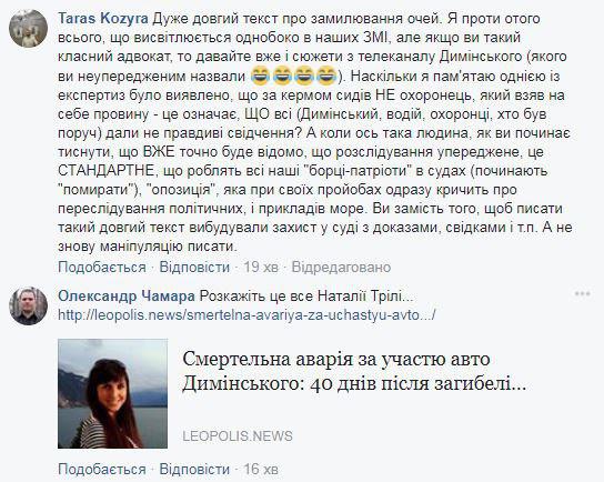 Як відомо, смертельна ДТП за участю автомобіля Димінського сталася 18 серпня на трасі М10 Львів-Краковець у селі Ямельня, Яворівського району близько 15:10. В аварії загинула 31-річна Наталія Тріла.