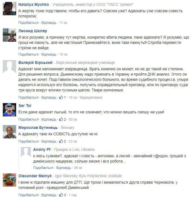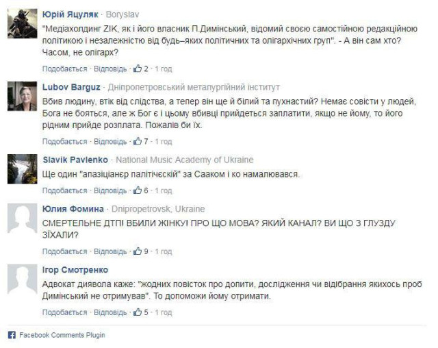 Адвокат власника ФК "Карпати", екс-компаньйона по олігархічній групі "Континіум" Степана Івахіва Петра Димінського, якого підозрюють у скоєнні смертельного ДТП на Львівщині, Микола Лисий сумнівається в об’єктивності розслідування і не виключає, що це може бути пов'язано із зацікавленістю телеканалом ZIK. Натомість українці в соцмережах обурюються таким закидам, зазначаючи, що олігарха намагаються врятувати від відповідальності, попри його очевидну провину.