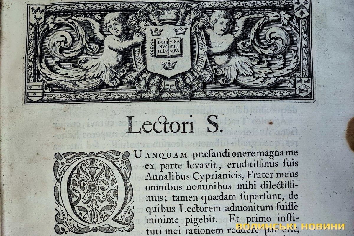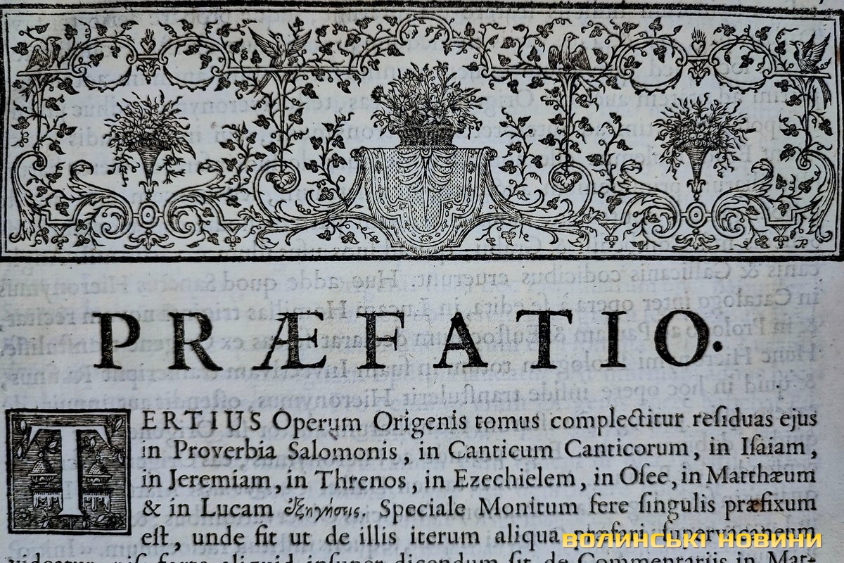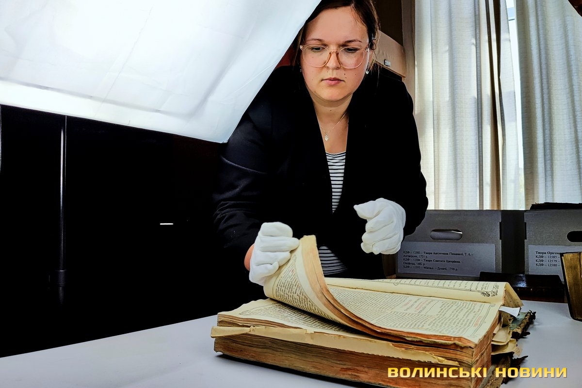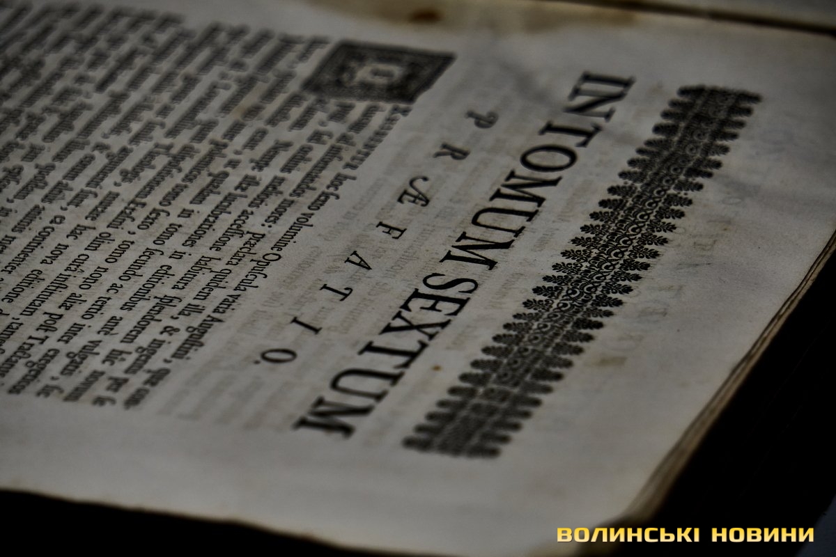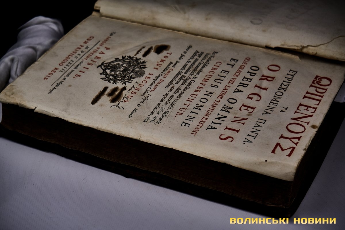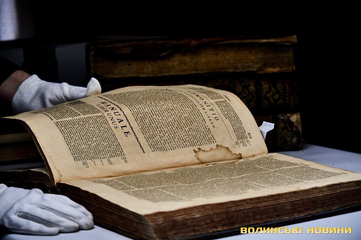 Про них Інформаційному агентству Волинські Новини розповіла провідна наукова співробітниця Волинського краєзнавчого музею Анна Юхимчук.1. Книга «Missae propriae Sanctorum…» латиною видана у 1771 році в Антверпені, який свого часу був видавничою столицею Європи. Це книжка для церковної служби, яка поєднує молитви, піснеспіви та нотні тексти.Стародрук дуже гарно оздоблений гравюрами (їхня особливість – використання червоного кольору) та мідьоритами. Одна з них – гравюра «Благовіщення» авторства відомого італійського гравера Антоніо Братті (1724–1787), роботи якого зберігаються у Музеї мистецтва Метрополітен в Нью-Йорку, в Британському музеї. Ініціали у книжці містять зображення монастирів або храмів. І для кожної літери зображення інакше. Вочевидь, це конкретні споруди у тогочасній Європі. У цих томах колись засушували рослини для гербарію, які збереглися і досі. На жаль, невідомо, якого вони часу.2. Дві книги «Systema naturae» («Основи природи») авторства Карла Ліннея, видатного шведського вченого природознавця XVIII ст., зоолога та лікаря. Книжка «Основи природи» є основоположною у сучасній біологічній систематиці рослин та тварин. За життя автора її видавали 12 разів. Самого ж Карла Ліннея називала «принцом ботаніків», «Плінеєм Півночі» та «другим Адамом».Попри те, що класифікація рослин та тварин Ліннея мала недоліки, власне сама система називати кожну рослину двома латинськими назвами (родовою та видовою) збереглася досі. А ще цей вчений перший створив квітковий годинник – систему визначення часу за відкриттям та закриттям квіток різних рослин.3. Стародрук з творами Аврелія Августина, а саме шостий том, багатотомної серії його праць має форзац, проклеєний папером з різнокольоровими абстрактними малюнками. Титульний аркуш прикрашений вазоном. Декор книги не дуже багатий, чорно-білий, на початку розділів прямокутні заставки, іноді невеликі літографії. Для кожної літери ініціалу є своє зображення, деякі оздоблені рамками з рослинного орнаменту, інші ж на фоні стилізованих зображень храмів.Ця книга була власністю останнього ректора колегіума піарів у Любешеві Антонія Мошинського (1800–1893), що засвідчено його підписом. Майбутній ректор у 16 років прийняв обітницю, а пізніше був ув’язнений за зв'язок з філоматами – польським таємним товариством студентів Віленського університету, серед яких свого часу був Адам Міцкевич, один з найвідоміших польських поетів.4. Три примірники творів Орігена (185–254), якого прийнято вважати автором найбільшої кількості коментарів до Святого Письма. Твори Орігена – перший систематичний виклад доктрини християнства, який одночасно породив чимало теологічних суперечок. Автор належав до Александрійської теологічної школи. Попри те, що деякі його теорії визнані помилковими, він є святим в Коптській церкві в Александрії (орієнтальна православна Церква у Єгипті, Африці, на Близькому Сході).У фондах Волинського краєзнавчого музею є три томи творів Орігена. Перший та другий томи вийшли у 1733 році, третій 1740 році у Парижі. На корінці зберіглось золоте тиснення із номером тому та рослинним орнаментом. Для друку книг використаний папір з філігранню у вигляді літери «А». Текст двомовний: кожна сторінка розділена на дві частини, де синхронно розміщено текст грецькою та латинню. Сторінки книги нумеровані не арабськими цифрам