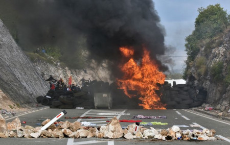 Na blokadi puta Podgorica- Cetinje vidi se dim zapaljenih automobilskih guma na drugoj strani tj na putu Cetinje- Budva @novabhtv #cetinje #Podgorica pic.twitter.com/dyTQc5TbLv