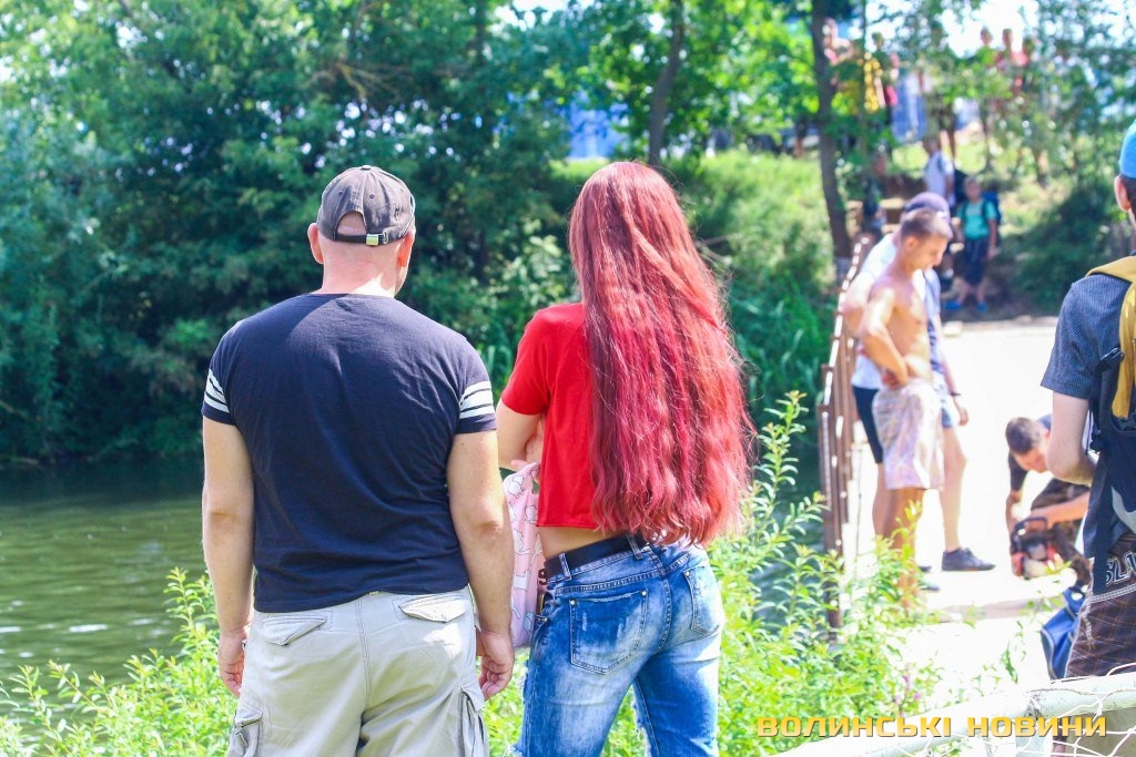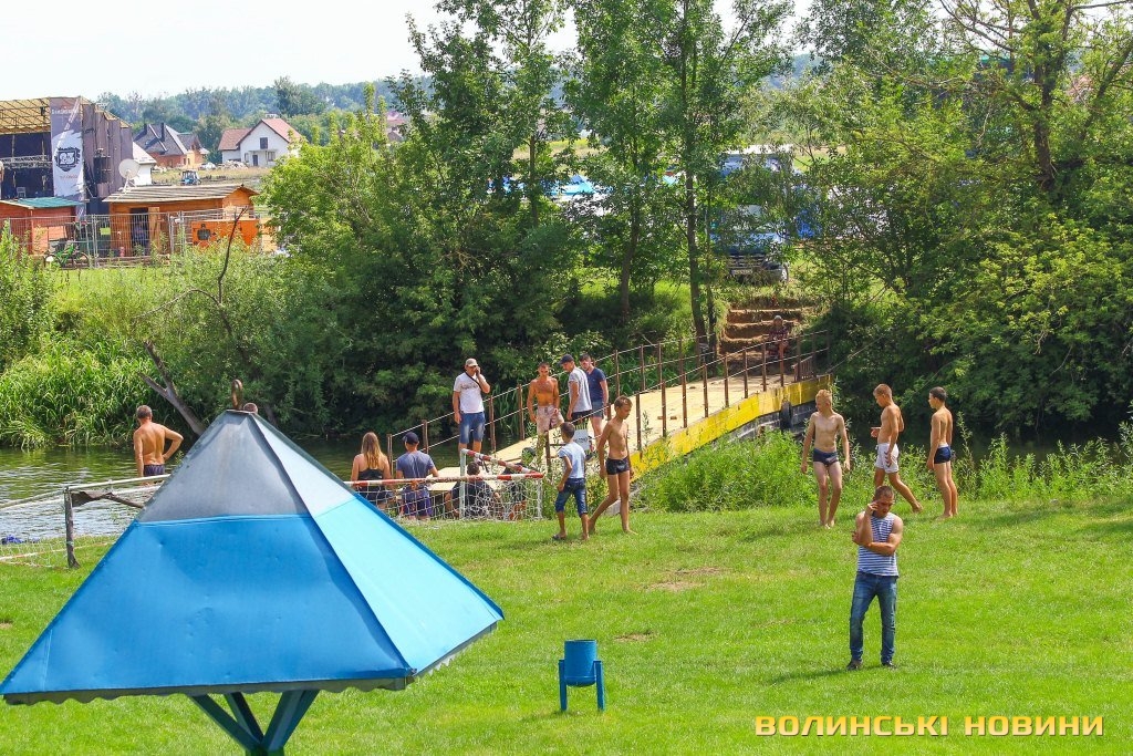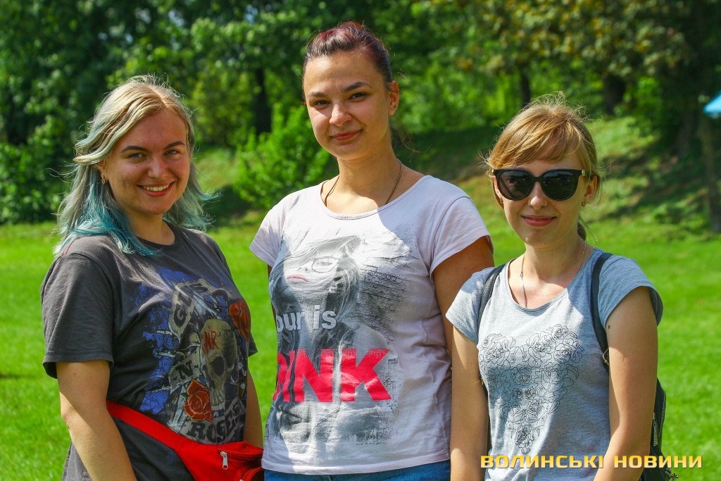 «Тут можуть виступити гурти, які не завжди мають можливість виступати деінде. Щороку тут можна відкрити для себе якийсь новий гурт. Цього року нових теж дуже багато і перед тим, як їхати, ми їх переслухали, багато цікавих гуртів, про яких ми раніше не чули», - розповідає Дарина.Волонтерами на фестиваль зголосилися Настя, Даша та Юля, які представляють Луцьк та Львів. Їх зацікавили гурти, які беруть участь у фестивалі, а також те, що він безалкогольний. Дехто з дівчат на фестивалі вже вчетверте, а дехто вперше. Від фестивалю очікують хороших емоцій та нових цікавих знайомств.Доки лучани відпочивають на пляжі під нещадним сонячним промінням, а місток через Стир завершують встановлювати, у затінку дерев розташувалися кияни Ярослав з дружиною Катериною та другом Олександром. На фестивалі вони будуть вперше.