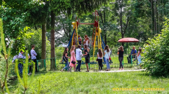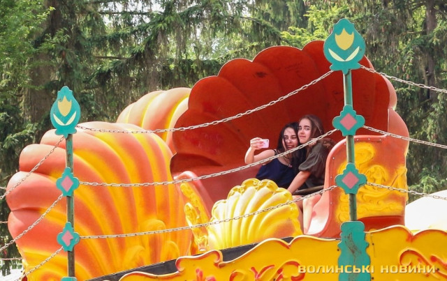 Веселі та сповнені оптимізму після завершення навчального року школярі заповнили алеї парку: дехто рятується від тридцятиградусної спеки, поливаючи себе та друзів водою з фонтанів поблизу центрального входу, хтось цілими компаніями розважається на атракціонах чи ласує морозивом, а хтось вирушає на пляж. Погляд на луцький парк, «окупований» школярами – у фоторепортажі Інформаційного агентства Волинські Новини.
