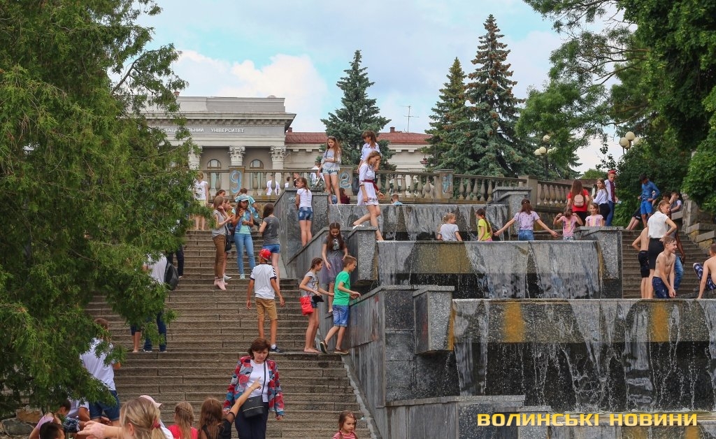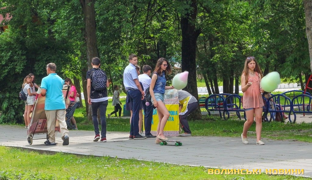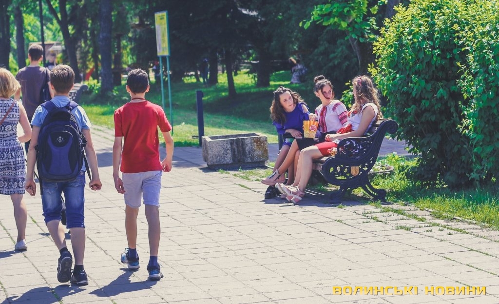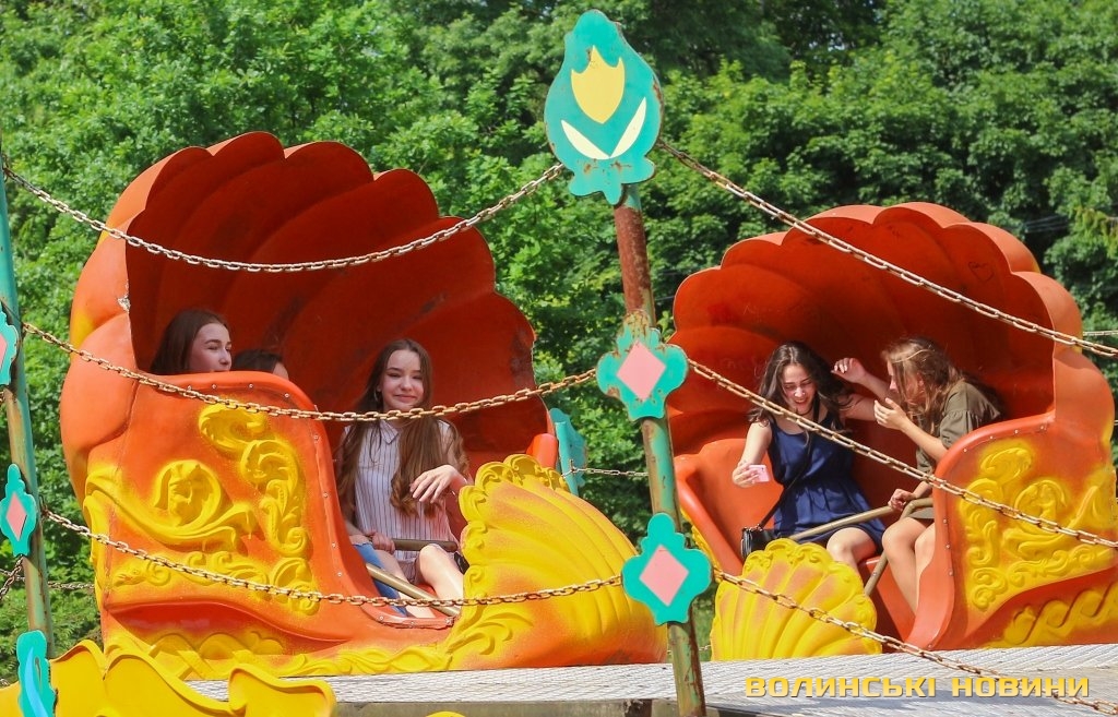Веселі та сповнені оптимізму після завершення навчального року школярі заповнили алеї парку: дехто рятується від тридцятиградусної спеки, поливаючи себе та друзів водою з фонтанів поблизу центрального входу, хтось цілими компаніями розважається на атракціонах чи ласує морозивом, а хтось вирушає на пляж. Погляд на луцький парк, «окупований» школярами – у фоторепортажі Інформаційного агентства Волинські Новини.