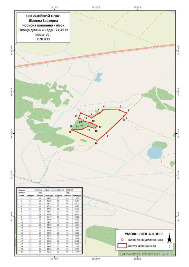 Як лот виставлено спеціальний дозвіл на користування надрами – ділянкою Заозерна. Вартість геологічної інформації – 6% ціни спеціального дозволу на користування надрами.