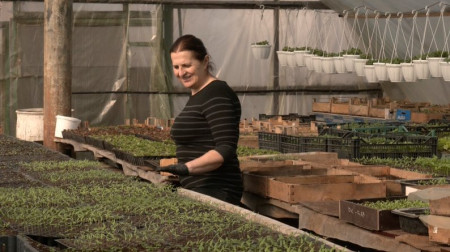 «Квіти я так само почала сіяти десь 30 січня. Я біля них розквітаю, просто мені так хороше, співаю і вони ростуть», – говорить жінка.У теплиці працює чоловік та дружина, до роботи також залучають дітей, працівників не наймають, каже Віктор Ходорчук.