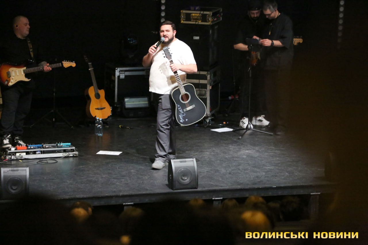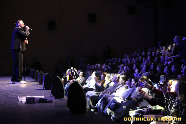 «Неймовірно радий повернутися до вас. Є так багато варіантів провести вечір неділі, але ви обрали цей концерт. І я це дуже ціную. Дякую, що прийшли. Ми сьогодні привезли гарний настрій, тож будемо його роздавати як вай-фай», – звернувся артист до луцької публіки.Читати ще: «Питання є? Питань нема»: співачка Victoria Niro дебютувала на луцькій сцені. Фото