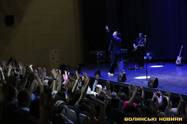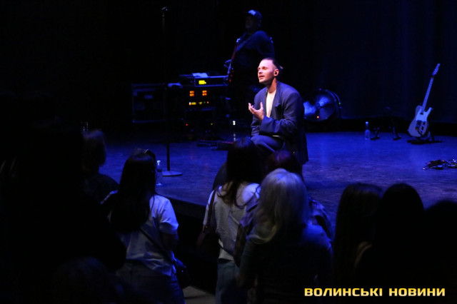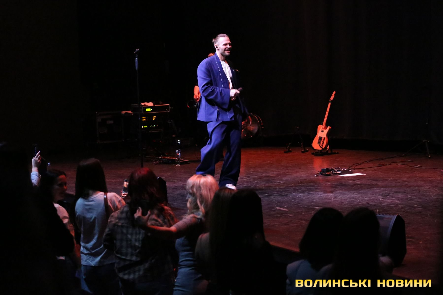А далі артист знову запалював піснями – «Таро», «Пазл», «Як маяки». На пам'ять про вечір виконавець попросив світлину з лучанами.