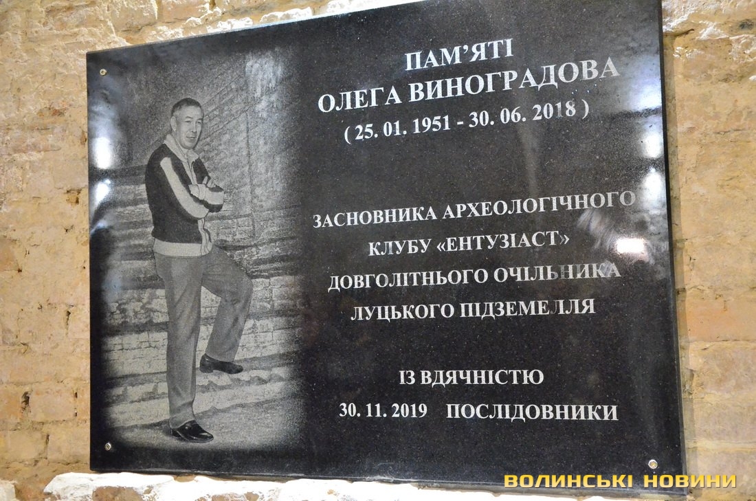 Відкрили оновлену експозицію та інформаційну таблицю, присвячену пам’яті хранителя підземелля, засновника клубу «Ентузіаст» Олегу Виноградову, в четвер, 5 березня.