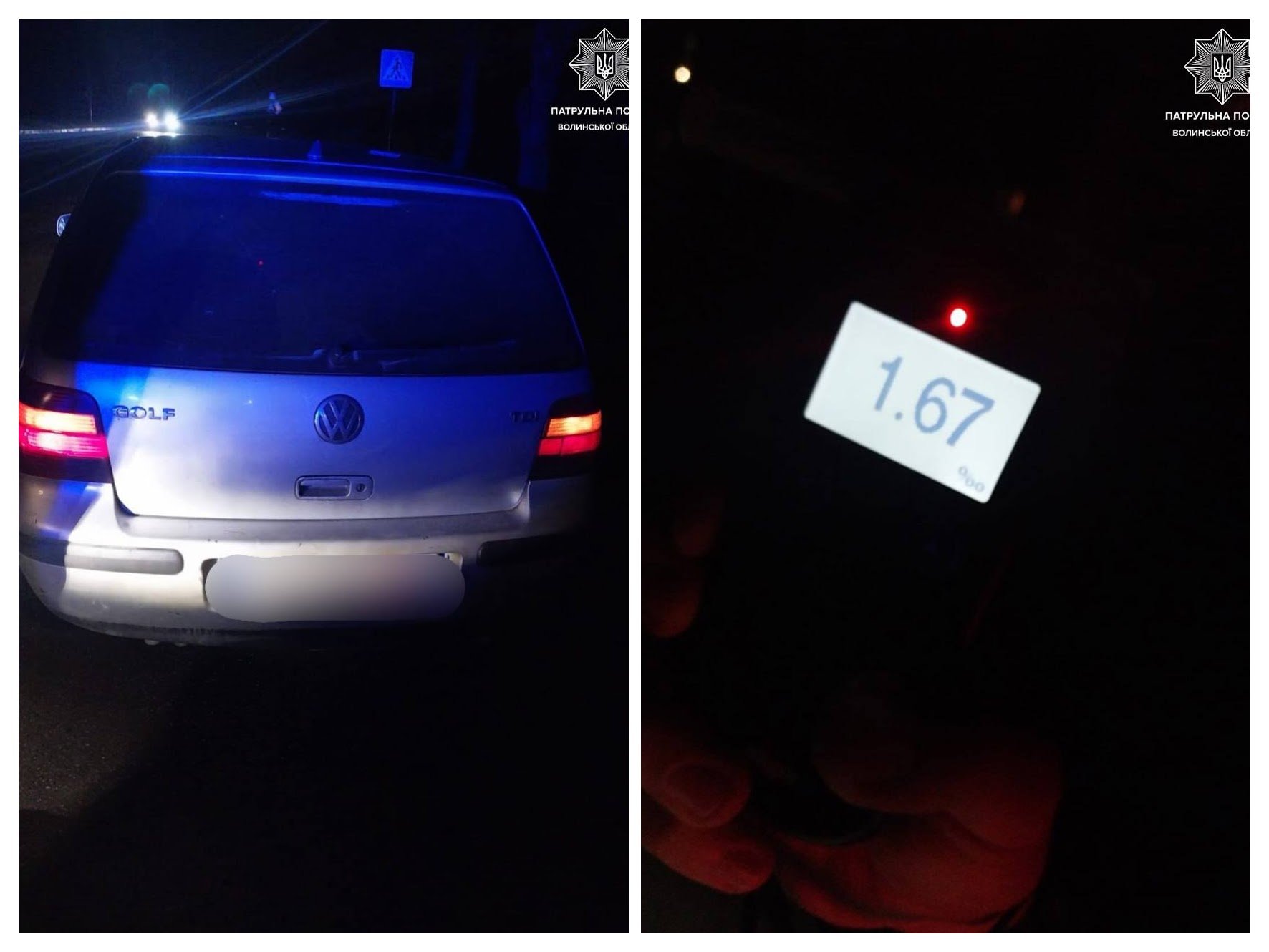 Під час спілкування з 25-річним керманичем інспектори помітили у нього ознаки алкогольного спʼяніння. Водію запропонували пройти огляд на місці за допомогою приладу «Драгер». Результат – 1,67 проміле.