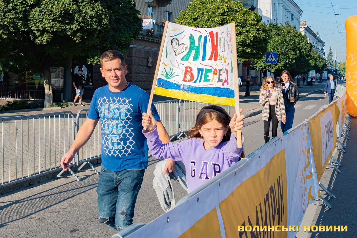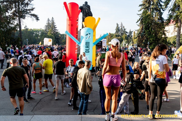 Загалом, градус позитиву недільного ранку на проспекті Волі в Луцьку просто зашкалював.Тим часом на фінішній прямій з’явилися перші бігуни, які долали п’ятикілометрову дистанцію.