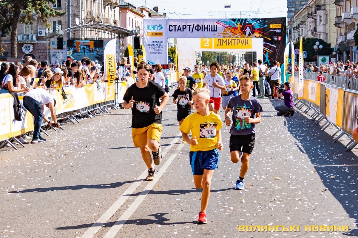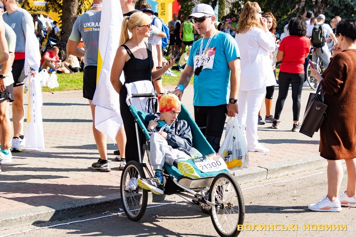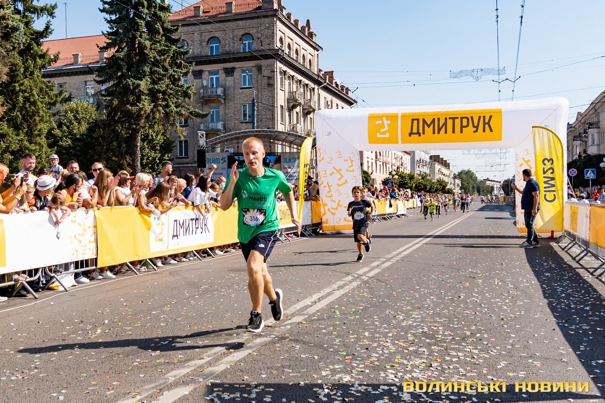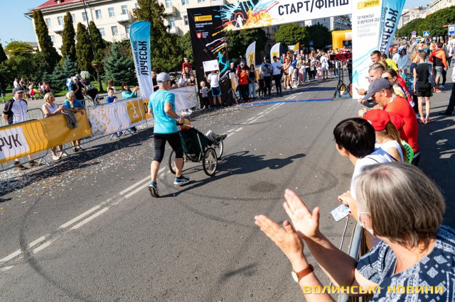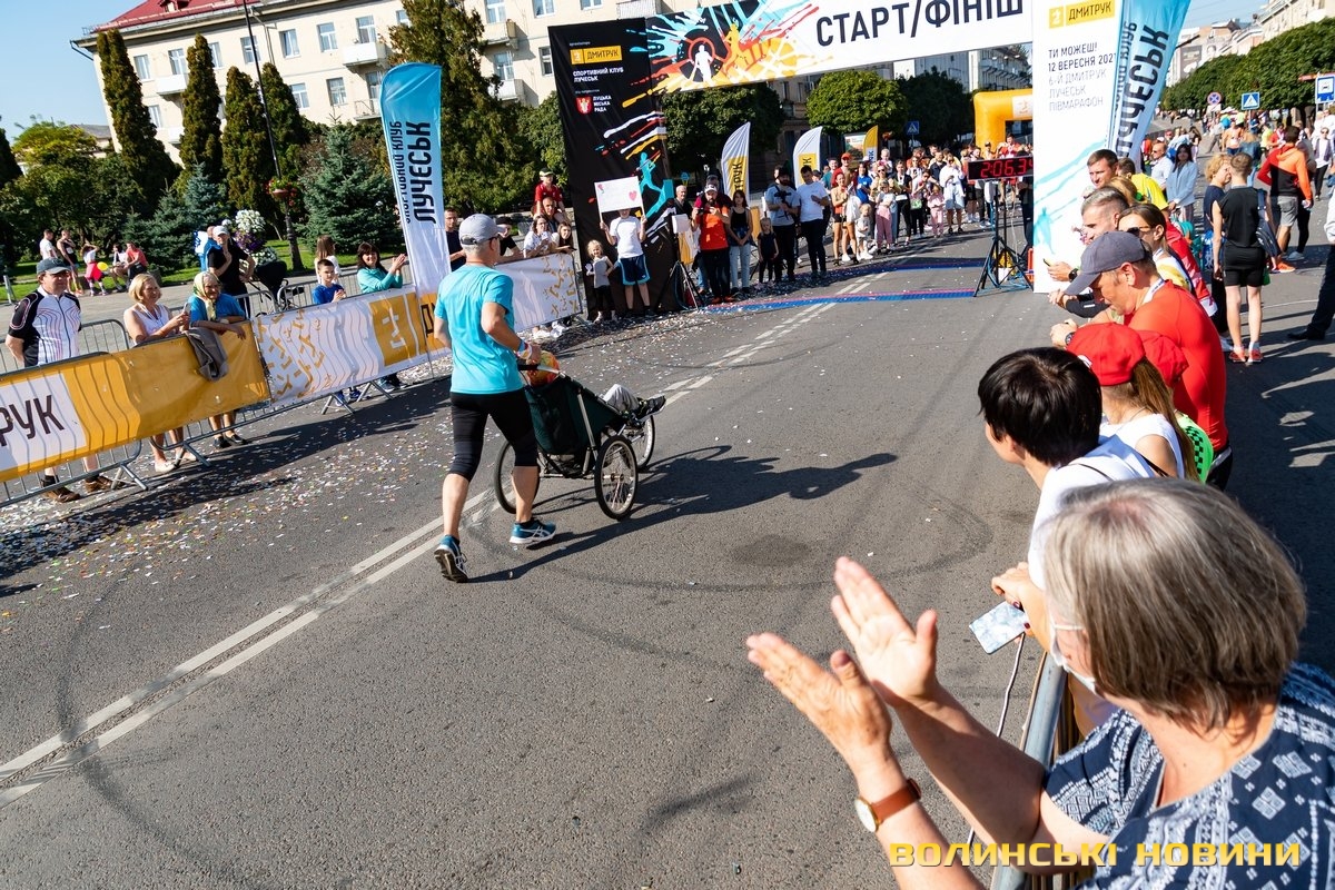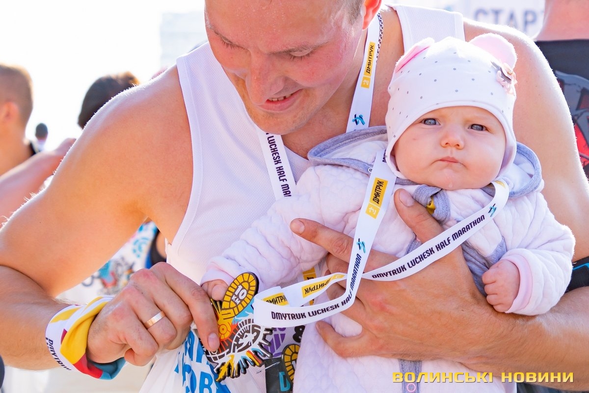 Дистанцію в 21 кілометр біг і перший заступник голови Волинської обласної ради Юрій Поліщук. Каже, останні півтора року систематично бігає в парку, а от участь у такому забігові бере вперше.«Хотів самому собі довести, що зможу це зробити, – зізнається він. – І зміг! Тепер от втомлений, але щасливий».Лучанин Володимир Грабовий біг із сином Сашком, який має інвалідність. Загалом, їхня родина ніколи не пропускає участі в півмарафоні. Зазвичай разом з Сашком у візочку біжить мама, а цього разу на старт вийшов тато.«Це вже наш п’ятий півмарафон у Луцьку, – каже чоловік. – Біг – невід’ємна частина нашого з дружиною життя. Маємо купу медалей, досягнень. А для сина такі події – позитивні емоції».Окрім основних стартів, під час «Дмитрук Лучеськ Півмарафону» були забіги й для діток: для малюків до 6 років – на 100 метрів, для 7-8-річних – на 500 метрів, а для тих, кому 9-13 років – на 1000 метрів.