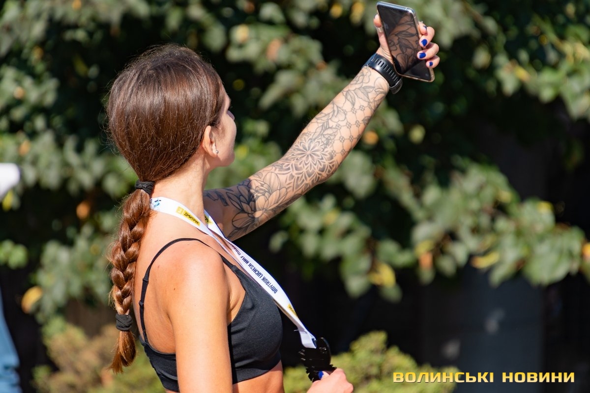 «Цьогоріч я вже біг 60 кілометрів і загорівся ідеєю підняти планку до 100. Дружині вдома ще про це не казав. Сподіваюся, вона зрадіє. А однодумців мені не бракує», – усміхається бігун.Тим часом уболівальники вітали бігунів, які долали максимальну дистанцію – 21 км. З-поміж них – спортсменка з Молдови Лілія Фіськович – учасниця Олімпійських ігор у Ріо-де-Жанейро і Токіо. До Луцька вона приїхала після подібних стартів, що відбувалися напередодні у Тернополі.«Біглося шикарно, погода чудова. Усе дуже сподобалося, емоції просто зашкалюють», – поділилася враженнями спортсменка.