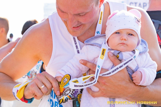 «Що мене мотивує? Маленький син! Хочу бути йому прикладом, – ділиться спортсмен. – Він тренується разом з мамою і татом. Хоч синочкові всього півтора року, але залюбки йде на тренування з нами».І учасників змагань, і вболівальників замилував бігун Сергій Ціхоцький з Луцького району, який долав дистанцію з двомісячною донечкою Міланою. Зізнається: основну трасу біг сам, а малечу підхопив на останніх 100 метрах.«Цього разу біг десятку. У змаганнях беру участь уже вп’яте, – розповів чоловік. – А сьогоднішній забіг присвячую донечці».