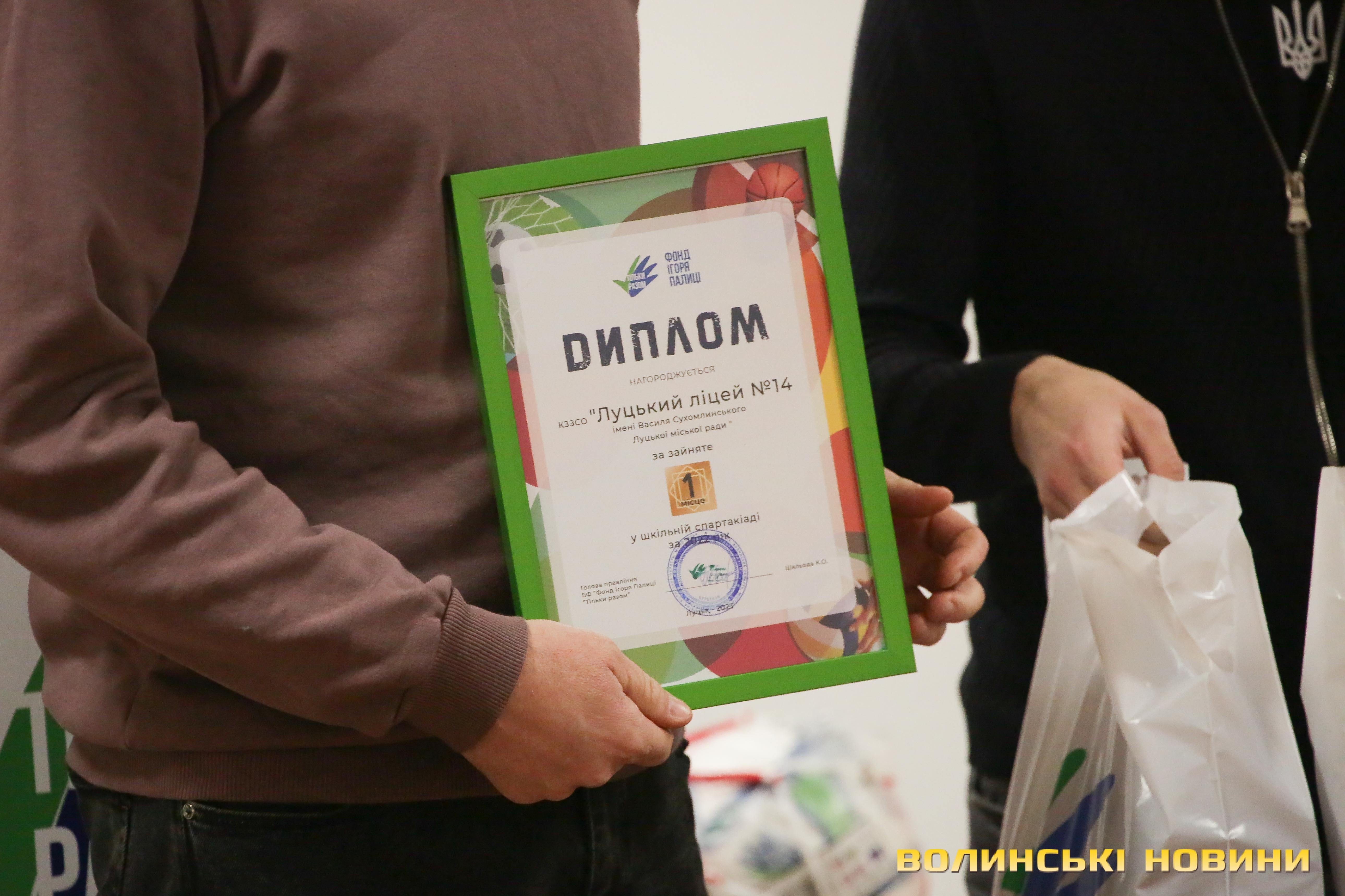 В обласному центрі Волині переможці минулорічної спартакіади Фонду Ігоря Палиці «Тільки разом» серед шкіл Луцької міської громади отримали заслужені нагороди.