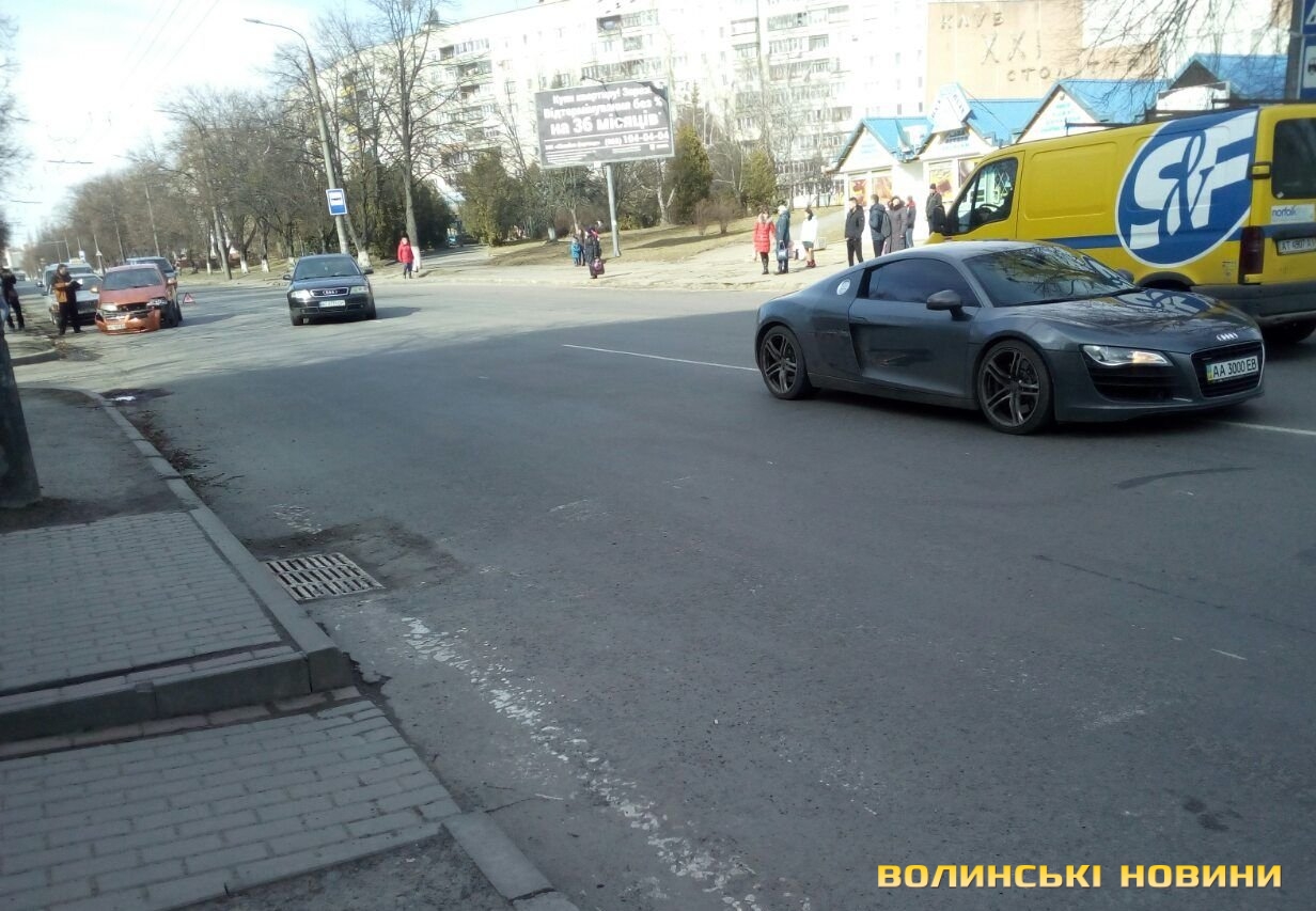 Спорткар Audi R8 зіткнувся з таксі у Луцьку. Відео