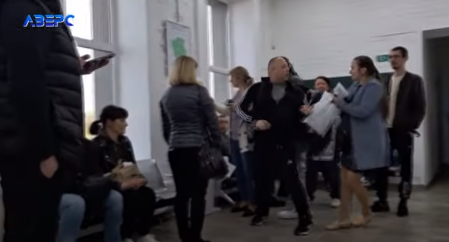 Той в черговий раз прийшов ухопити з терміналу вільного талона, але цього разу ухопив стусанів від жінок. Бо тим часом, коли вони стоять у черзі спозаранку, чоловік вже брав талони поза чергою і повернувся знову, повідомляє телеканал «Аверс».