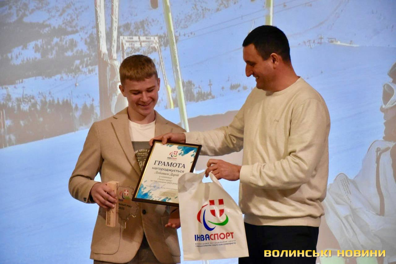 – Олексій Сундієв – тренер-викладач з фехтування на візках ВОДЮСШОІ.Статуетку «Талант року» отримав юний спортсмен Дарій Лобашев – майстер спорту України, чемпіон України та переможець Кубка України з пара гірськолижного спорту, переможець і призер фінальних змагань всеукраїнської спартакіади «Повір у себе» серед дітей з інвалідністю з пара легкої атлетики.Принагідно почесними грамотами за багаторічну сумлінну працю та вагомий особистий внесок у розвиток фізичної культури і спорту осіб з інвалідністю було нагороджено керівників окремих спортивних установ.Упродовж року Міністерство молоді та спорту України надало спортивні звання волинянам. Значок і посвідчення «Майстер спорту України» з пара гірськолижного спорту отримали Максим Гелюта, який є багаторазовим чемпіоном України серед осіб з УОРА, та Валерій Ліщина, який також став переможцем і призером чемпіонатів України серед осіб з порушеннями зору. Також свій значок отримала Марія Іванчик. Їй надано звання «Майстер спорту України міжнародного класу» (фехтування на візках).Традиційно на теренах Волині проводили і спартакіаду «Повір у себе» серед дітей з інвалідністю, яка дає поштовх для популяризації та розвитку спорту осіб з інвалідністю. У цій категорії також виокремили команди-переможців та нагородили їхніх представників.