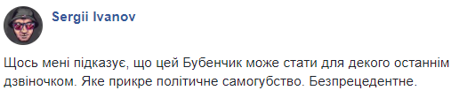 А от інший блогер, Сергій Іванов, назвав Бубенчика останнім дзвіночком для «декого».