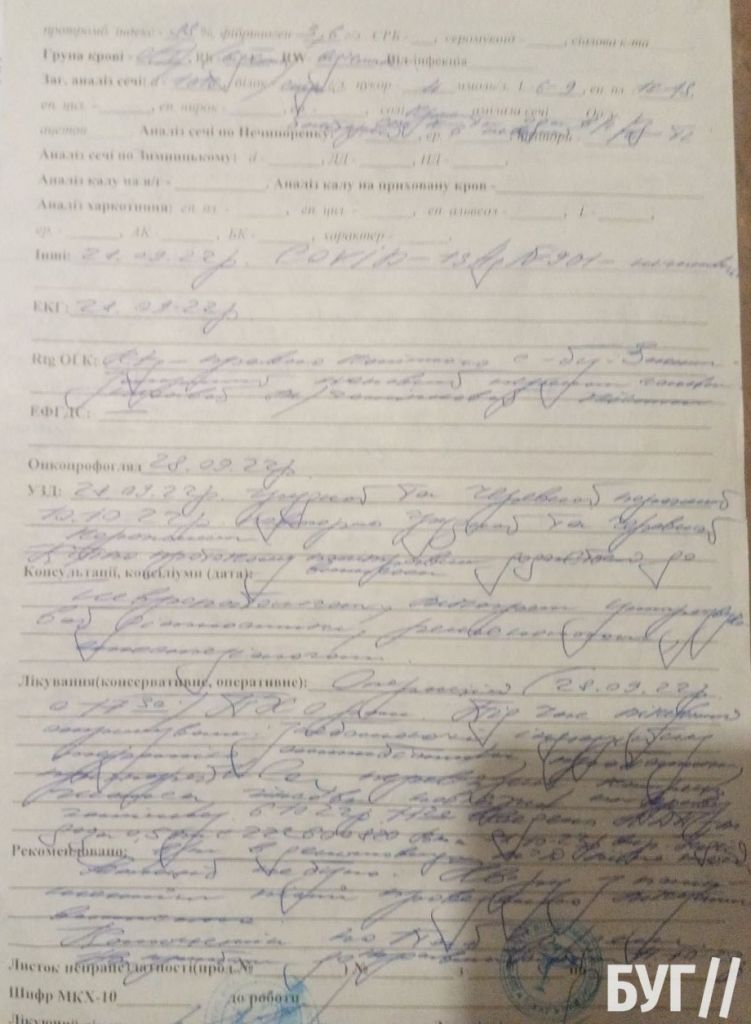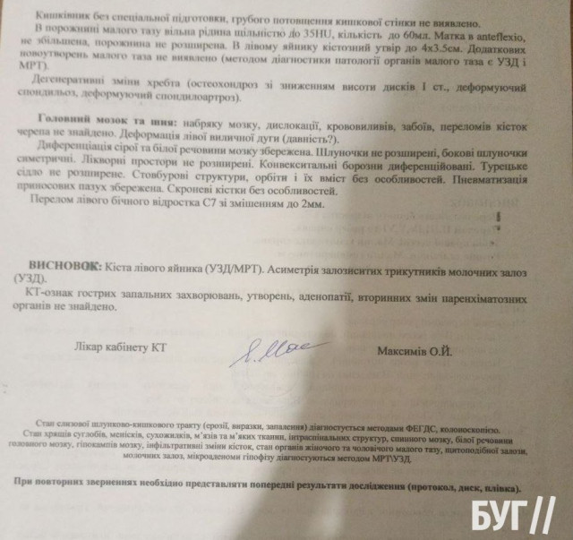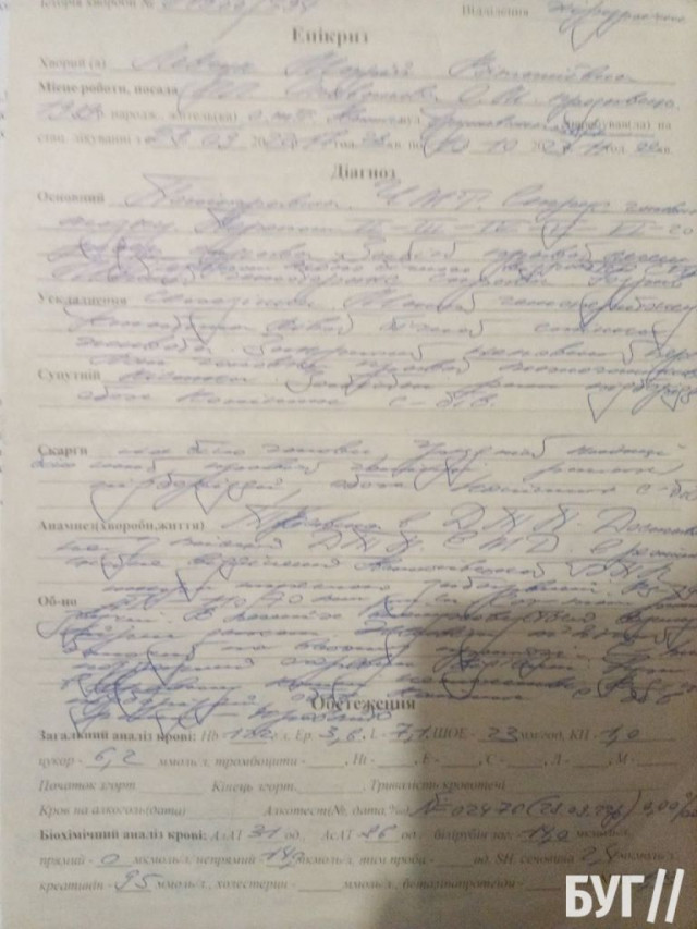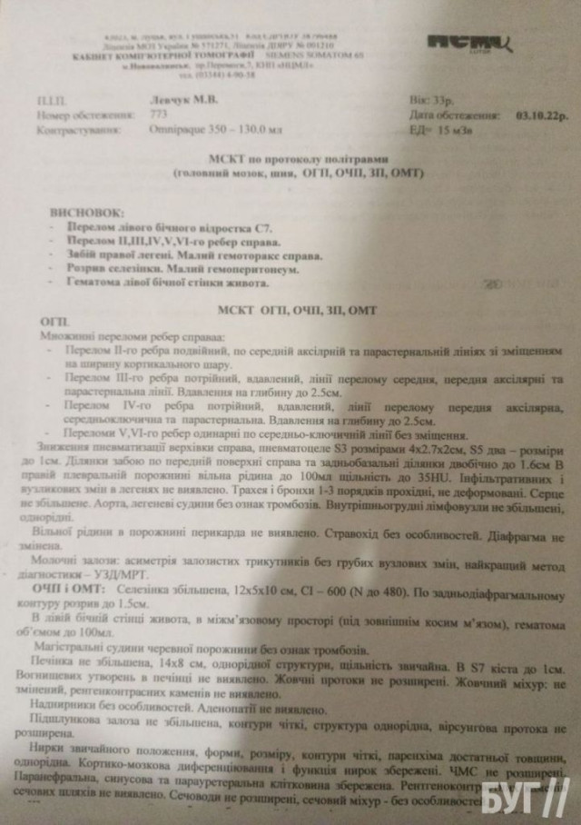 Марія в цій ДТП дуже сильно травмувалась і, мовляв, дивом уникла інвалідного візка. Жінка каже, що лікування було тривалим і важким. Лікарі встановили їй перелом лівого бічного відростка С7, перелом ІІ, ІІІ, ІV, V, VІ-го ребер справа, забій правої легені, розрив селезінки та гематому лівої бічної стінки живота. Експертиза вирішила, що ці травми належать до тілесних ушкоджень середньої тяжкості. Увесь час після ДТП Марія лікувалась. Спочатку диспансерно – у лікарні, потім амбулаторно – вдома. Ще й досі молода жінка відновлюється від аварії.
