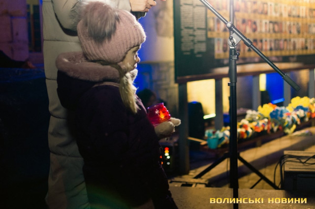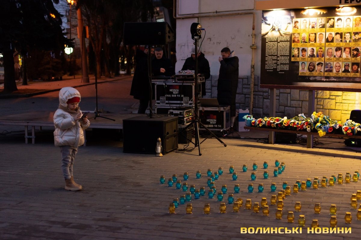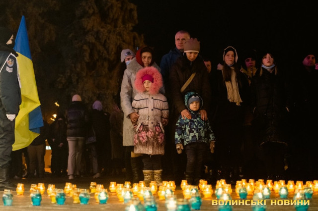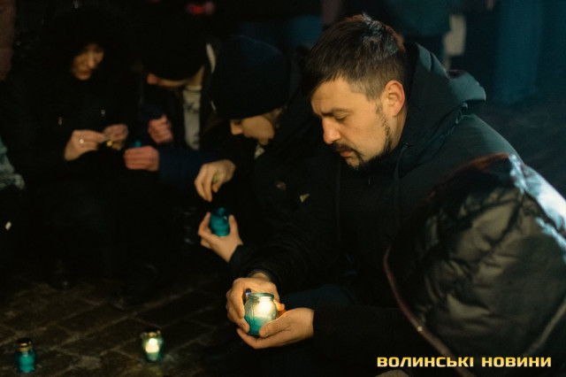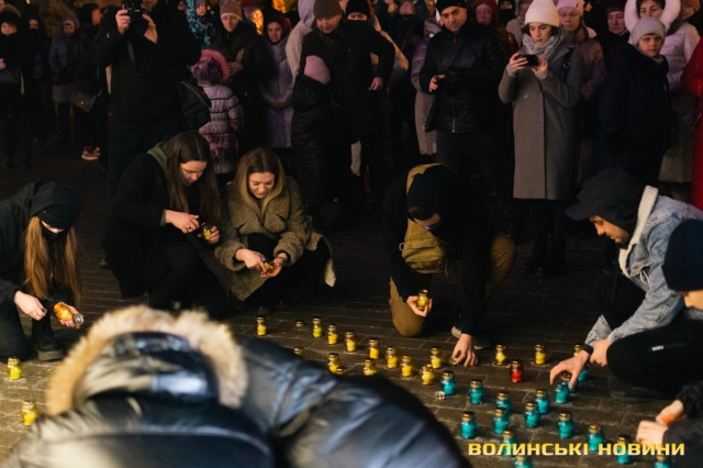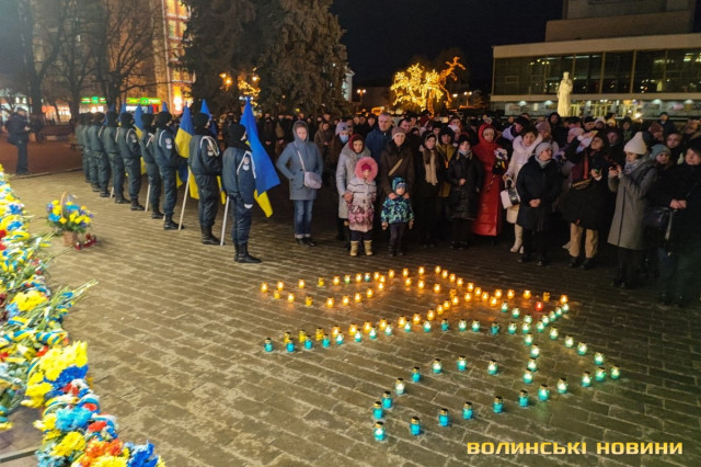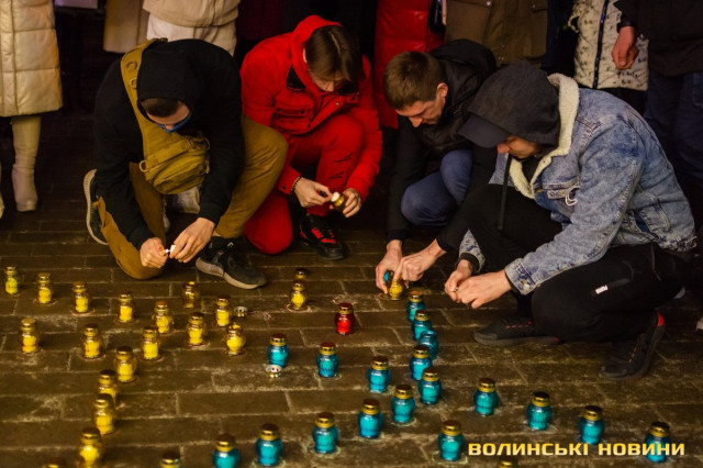 По тому учасники заходу запалили лампадки, з яких створили символічний тризуб біля стели Героїв.Читати ще: У Луцьку вшанували Героїв Небесної Сотні