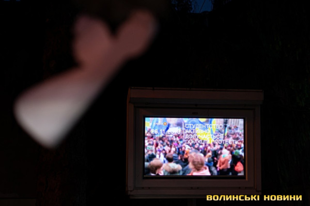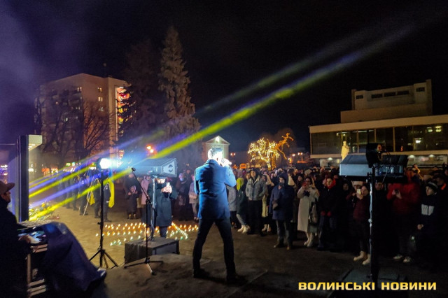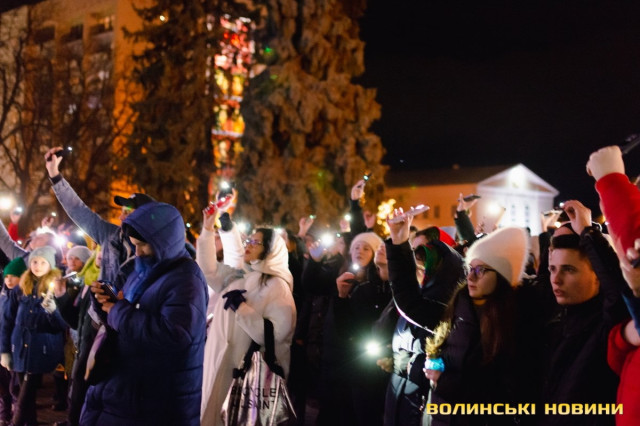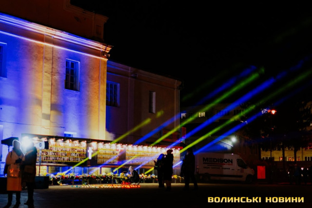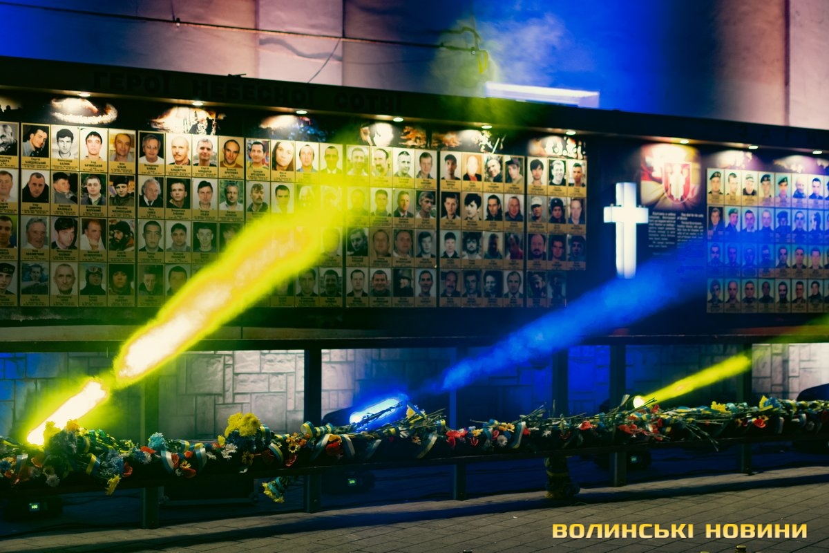 Під час акції уперше в Луцьку відбулася світлова ілюстрація «Промені Майдану».«Сьогодні у нас сім цих променів – саме стільки волинян загинуло на Майдані, – зазначив Юрій Семчук. – Вони символізують зв’язок із нашими Героями. Так ми передаємо їм свою шану».