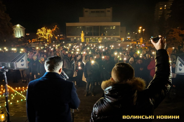 20 лютого на Театральному майдані в Луцьку на віче зібралися сотні містян, аби вшанувати Героїв Небесної Сотні.