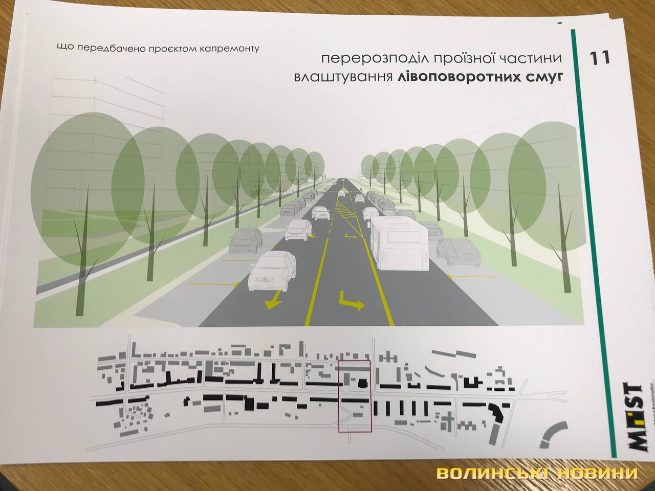 «Наш варіант із перепланування включатиме перерозподіл проїзної частини і влаштування лівоповоротних смуг для забезпечення можливості автомобілям повернути, не затримуючи основний транзит; влаштування кишень для поздовжнього паркування автомобілів, які частково вже влаштовані, зокрема біля гімназії №4. Після реконструкції ми отримаємо правильно організованих 200 паркомісць у чітко встановлених місцях з урахуванням потреб людей з інвалідністю», – сказала Ольга Шевчук.